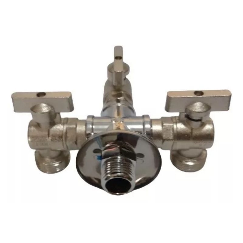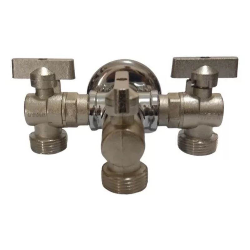 TORNEIRA TRÊS SAÍDAS CROMADA P/ MÁQUINA DE LAVAR TANQUE JARDIM 1/2 X 3/4