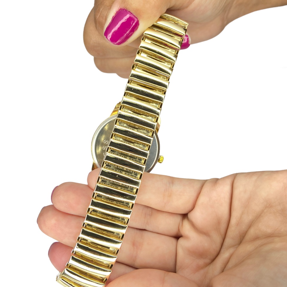 Relógio de pulso Feminino Quartz Dourado Mini Pulseira Elástica Analógico