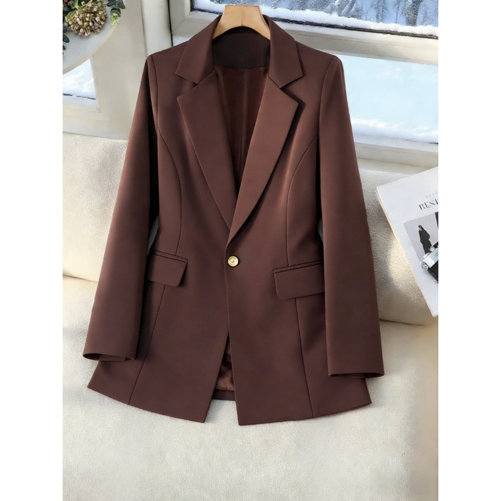 Blazer max alfaiataria feminino forrado com ombreira e botão social e elegante