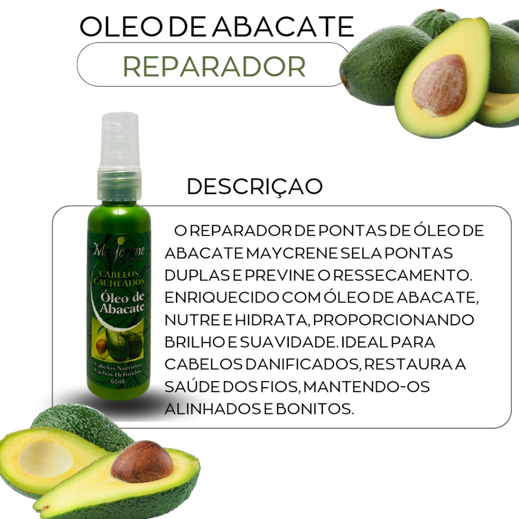 MONTE SEU KIT ABACATE MAYCRENE- SHAMP+COND+MASC+OLEO REPARADOR+ATIVADOR DE CACHOS