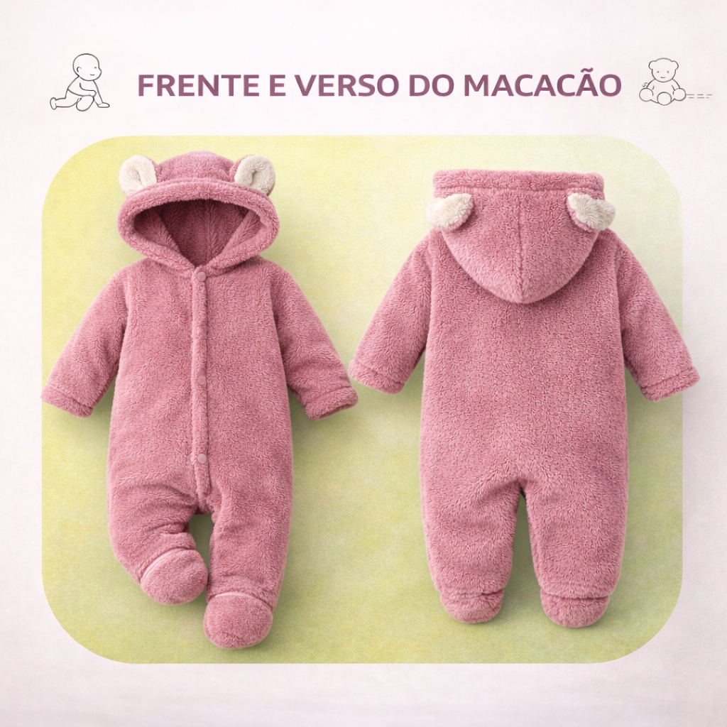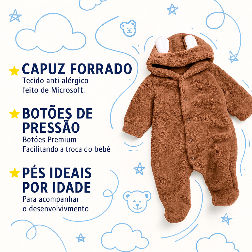 Macacão de Bebê Pelúcia Ursinho Menino Menina