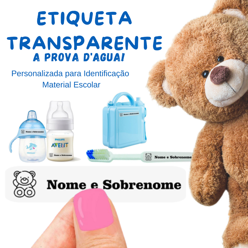 Etiqueta Adesiva à prova d'água 5 x 1 cm Transparente com 50 unidades para Identificação Material Escolar