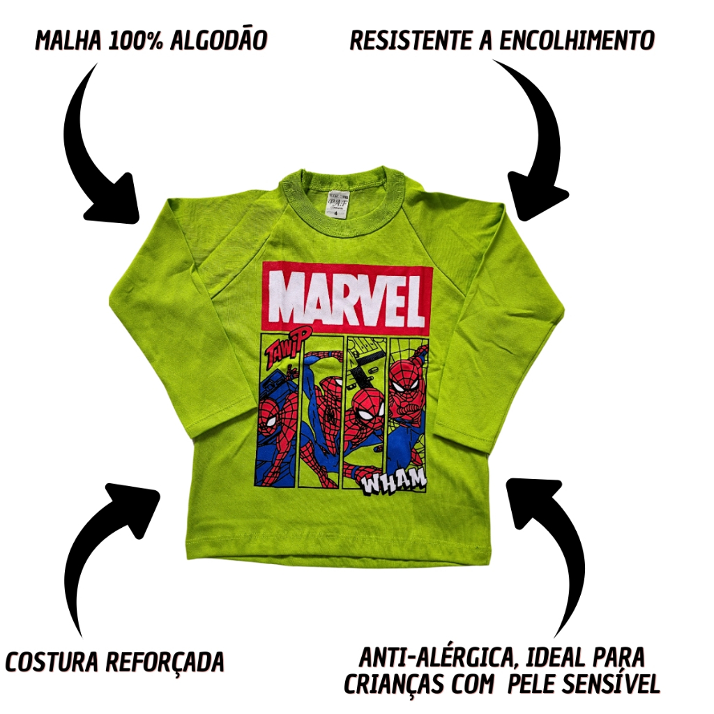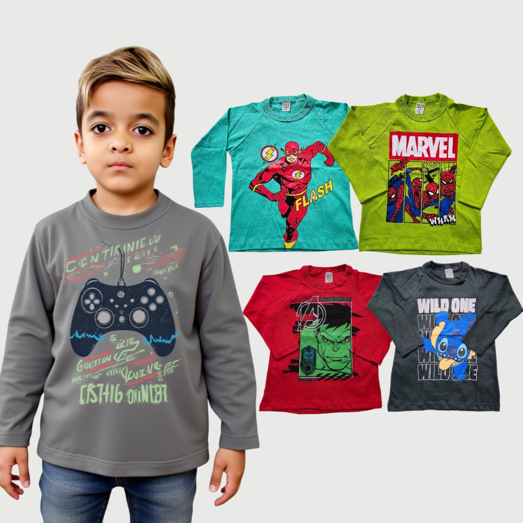Kit Camisetas Infantil Sortidos Desenho Manga Longa Menino Inverno Outono 2 à 8 Anos