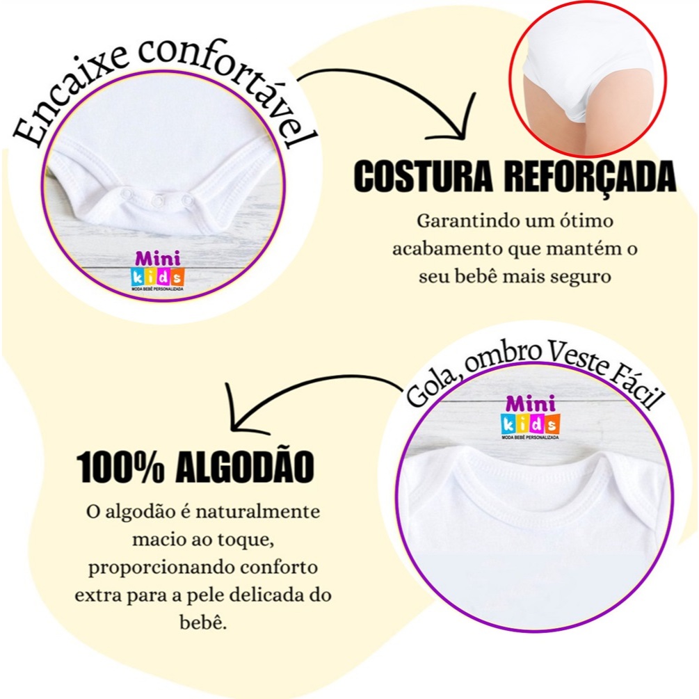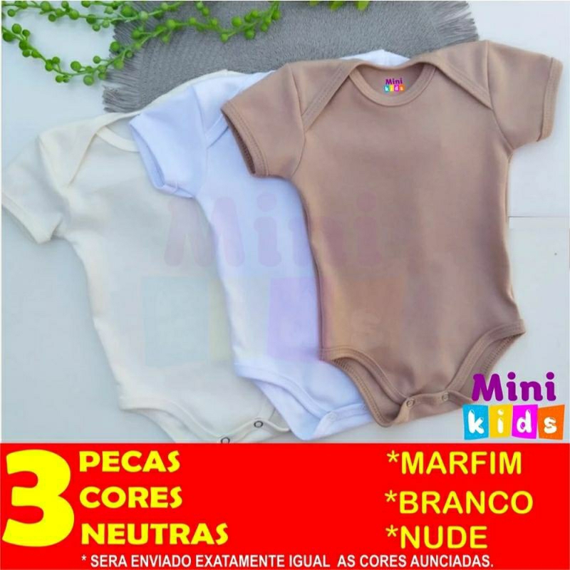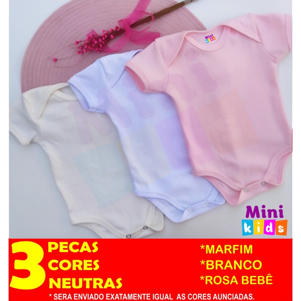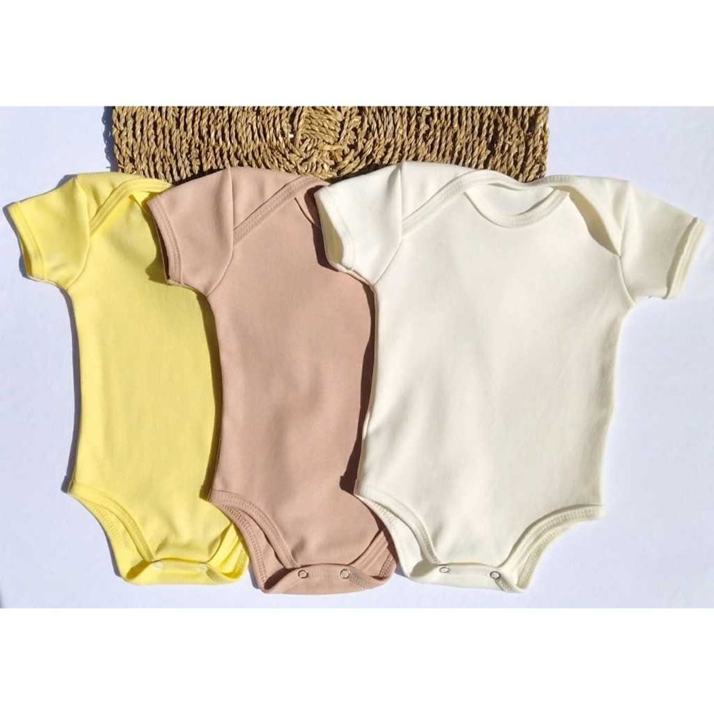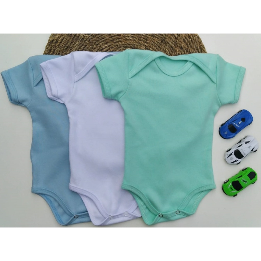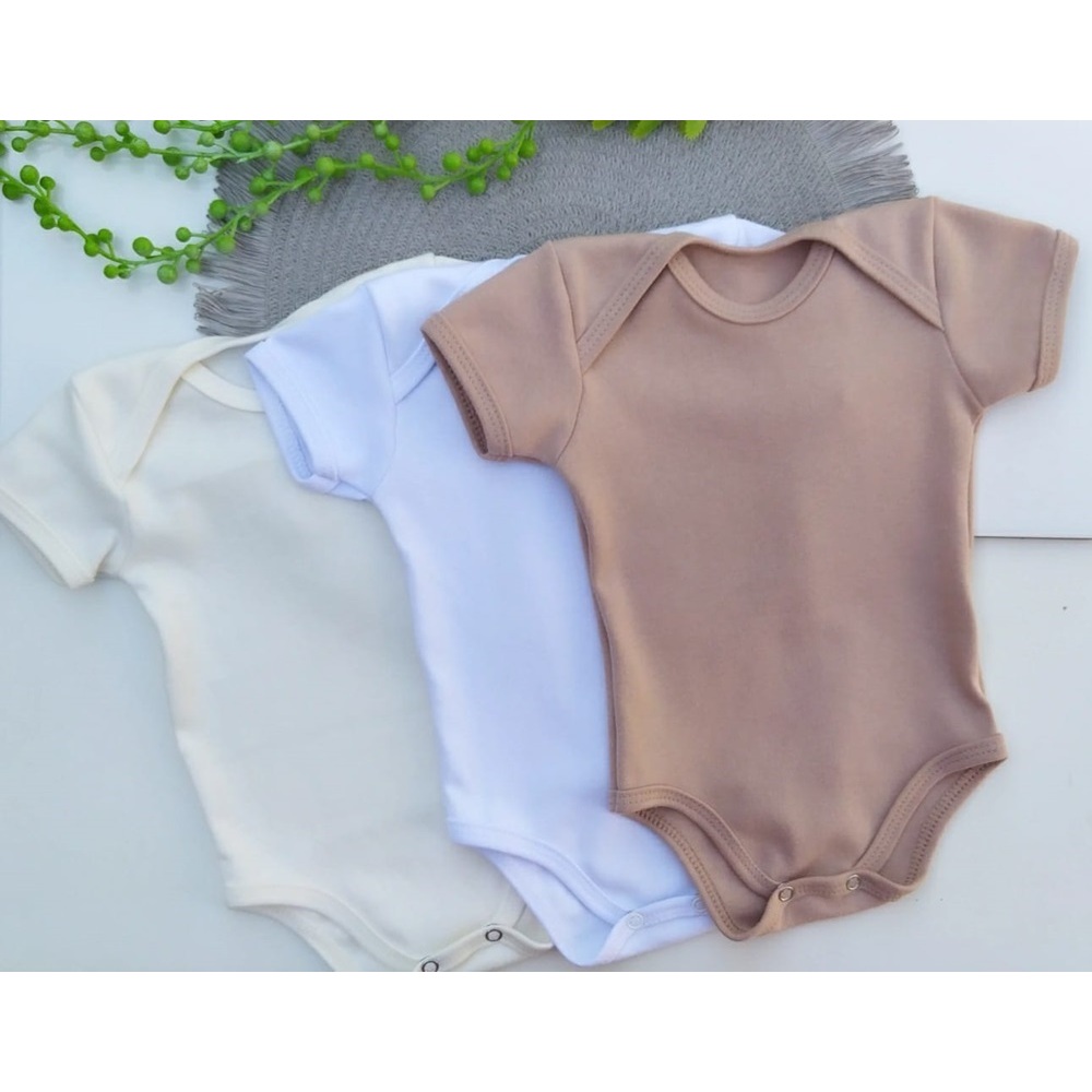 Body Bebê Kit 3 Peças Neutro Unissex Liso Menino Menina Manga Curta Suedine 100% Algodão