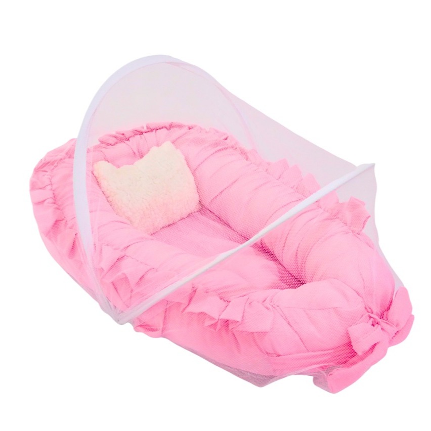 Ninho Redutor de Berço com Mosquiteiro - Liso com Babado