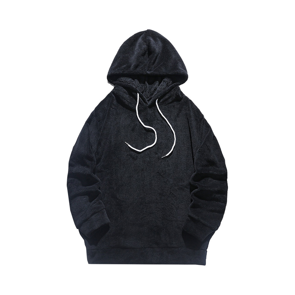 Solid Color Hoodie Men Hooded Sweatshirt Men's Fall Winter Thick Plush Lined Drawstring Hood Long Sleeve Casual Sport Lo