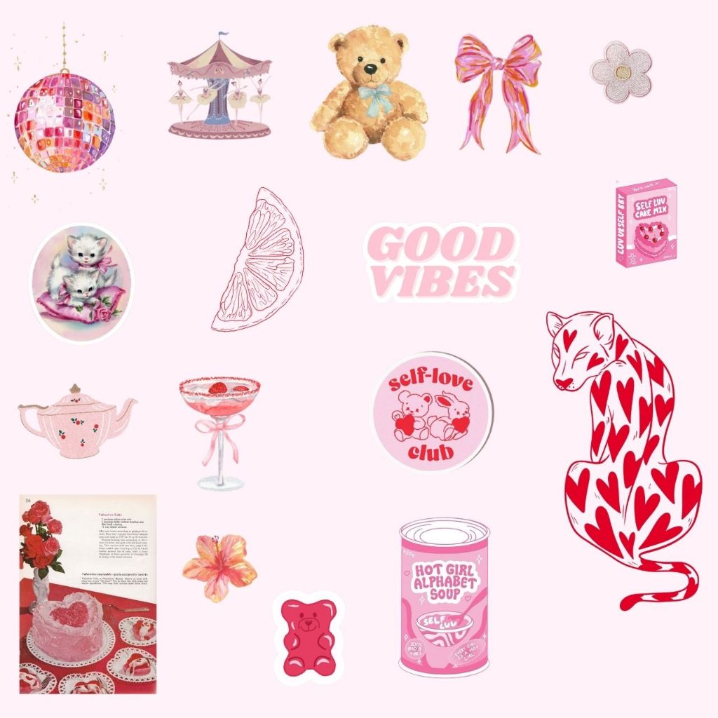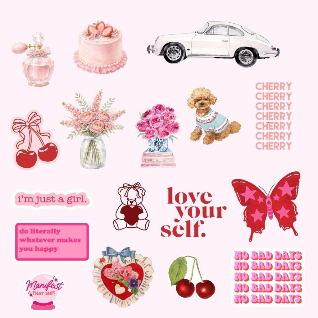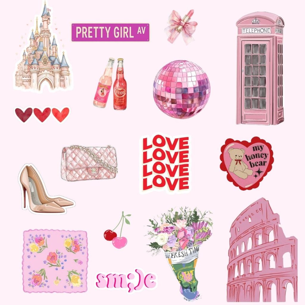 61 Adesivos Pink Love À prova d'água Para Colagem e Personalização Capinhas Garrafas Journal Scrapbook