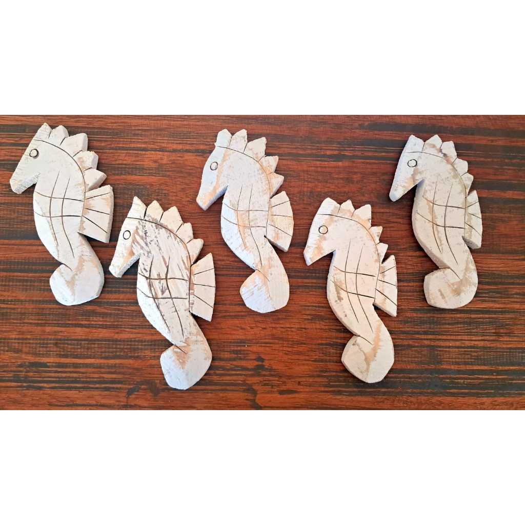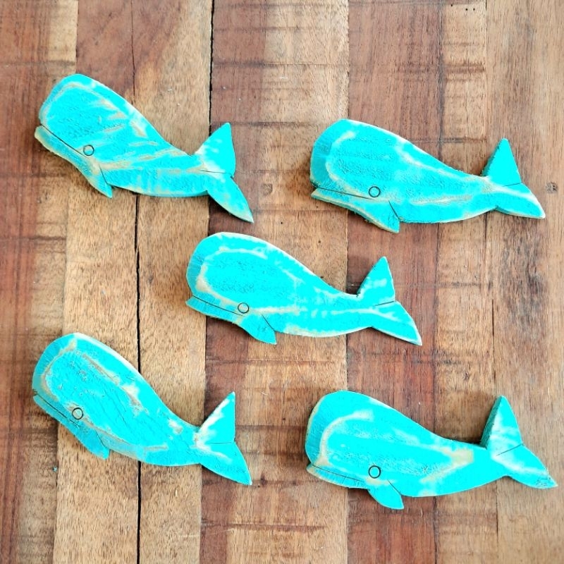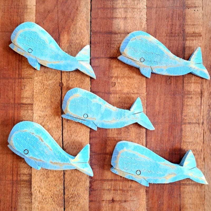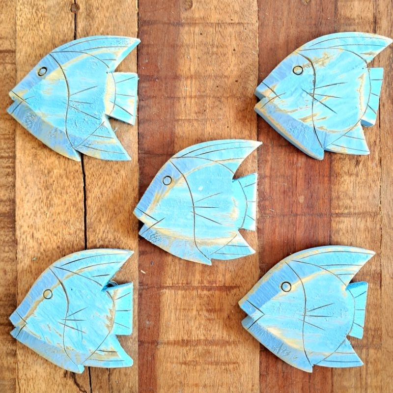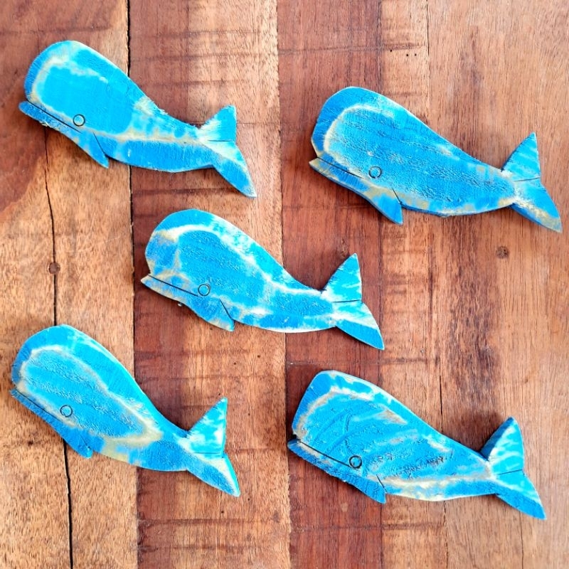 KIT 5 PEÇAS DE ANIMAIS MARINHOS ENFEITE DE PAREDE DE MADEIRA LINHA NÁUTICA