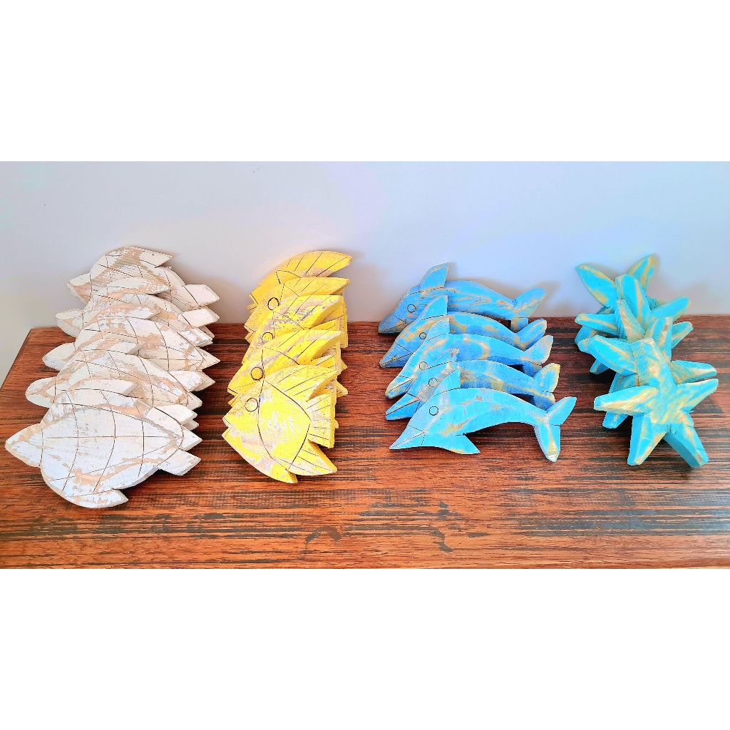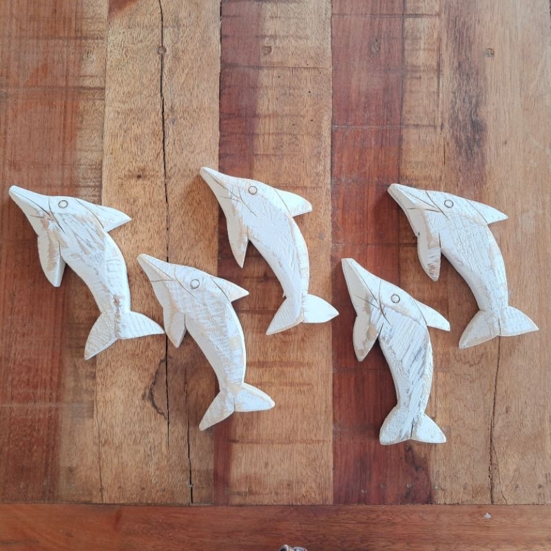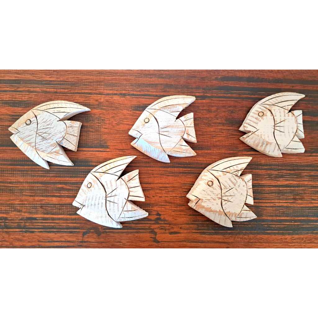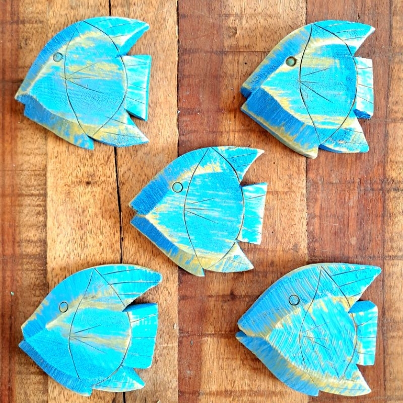 KIT 5 PEÇAS DE ANIMAIS MARINHOS ENFEITE DE PAREDE DE MADEIRA LINHA NÁUTICA