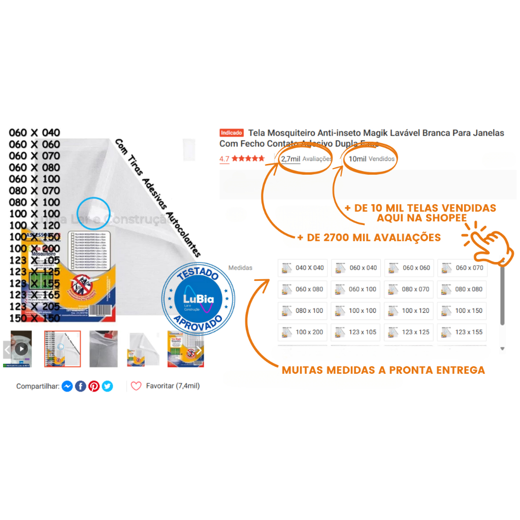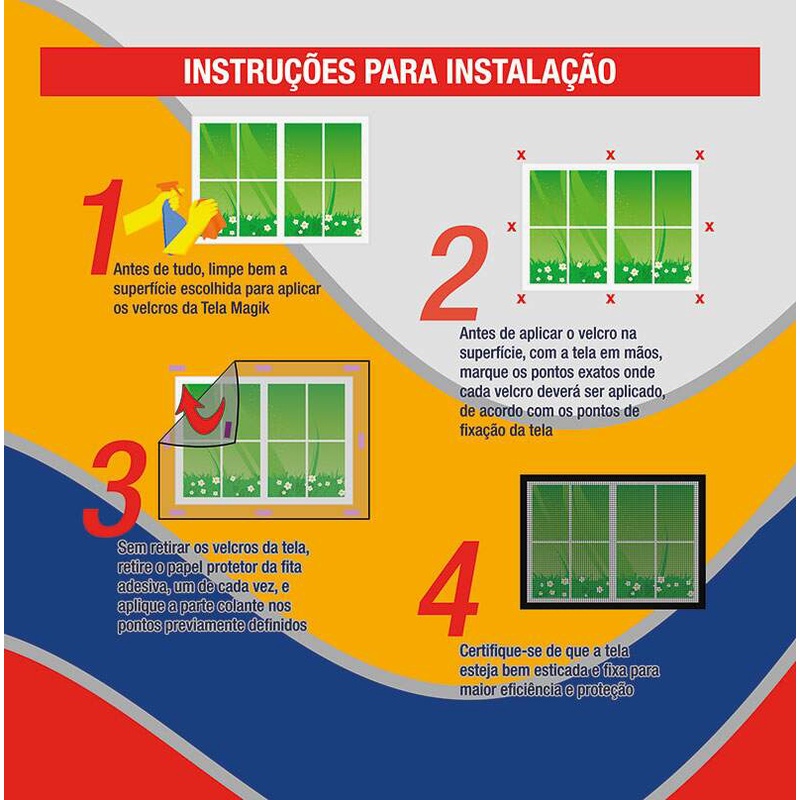 Tela Mosquiteiro Anti-inseto Magik Lavável Branca Para Janelas Com Fecho Contato Adesivo Dupla Face