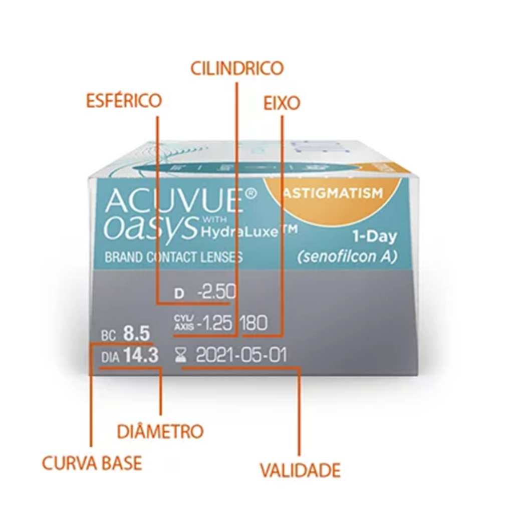 Lentes de contato Acuvue Oasys 1-Day com Hydraluxe para astigmatismo/torica