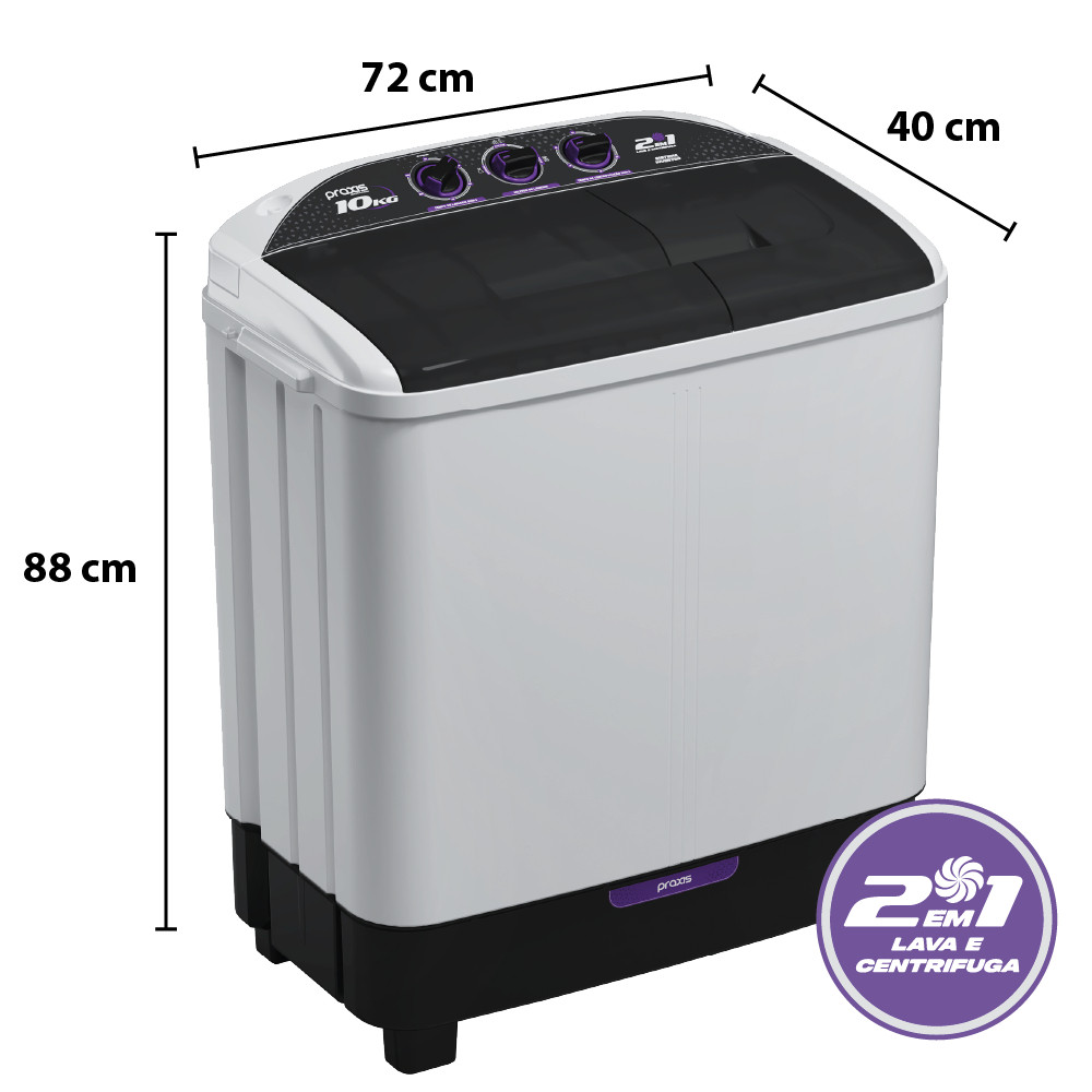 Máquina de Lavar Twin Tub Praxis 10kg 2 em 1 Lava e Centrifuga Branca