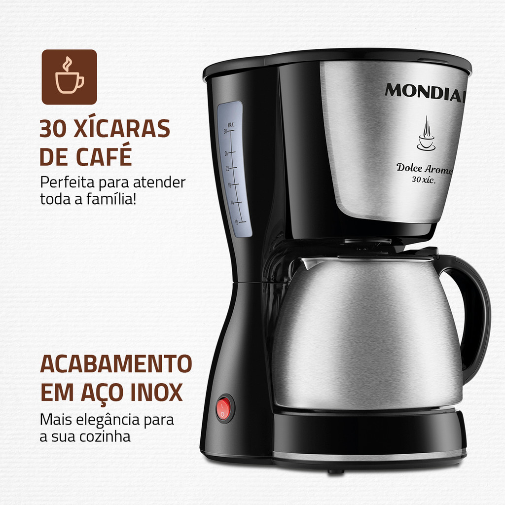 Cafeteira Elétrica Mondial Dolce Arome C-37ji-30x 800w Preto com Inox