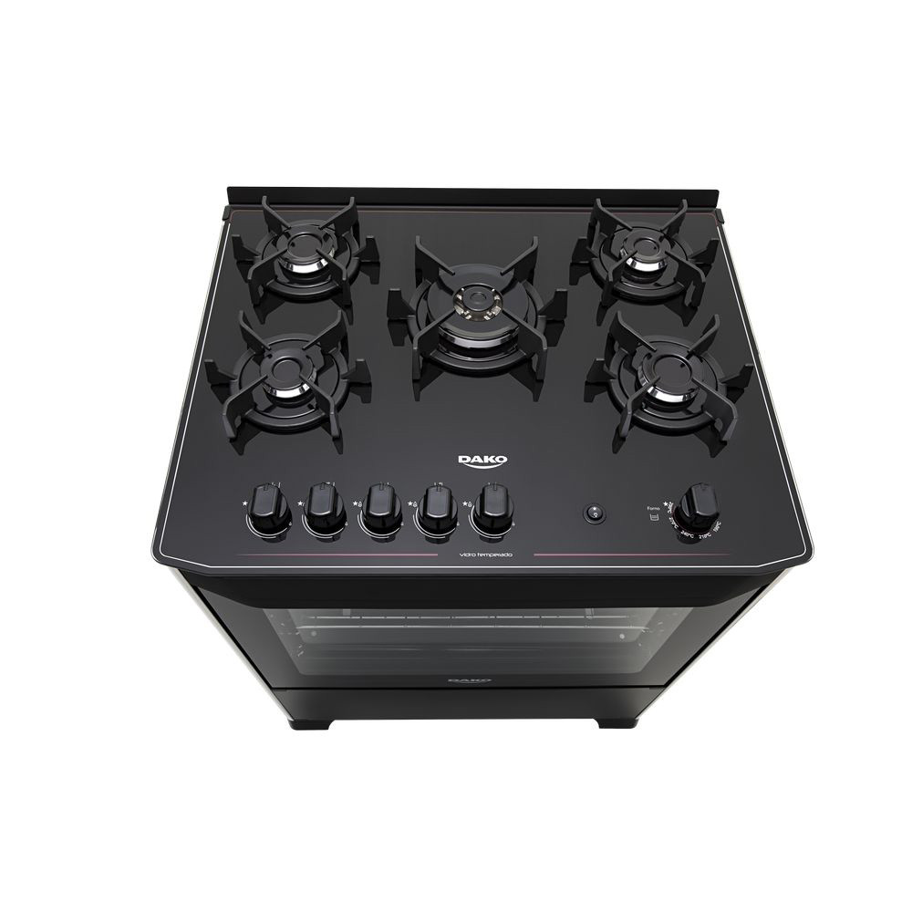 Fogão 5 Bocas Dako Magister com Mesa de Vidro e Acendimento Automático Preto Bivolt