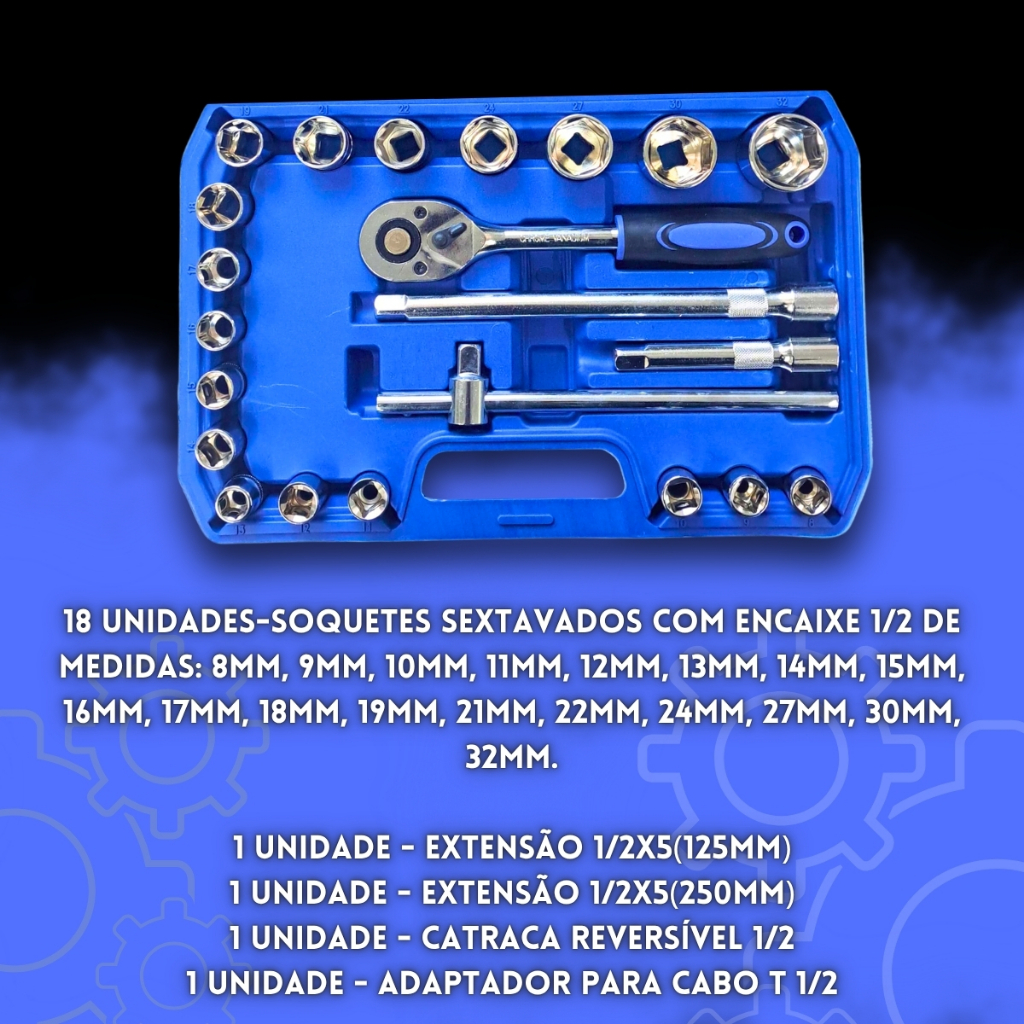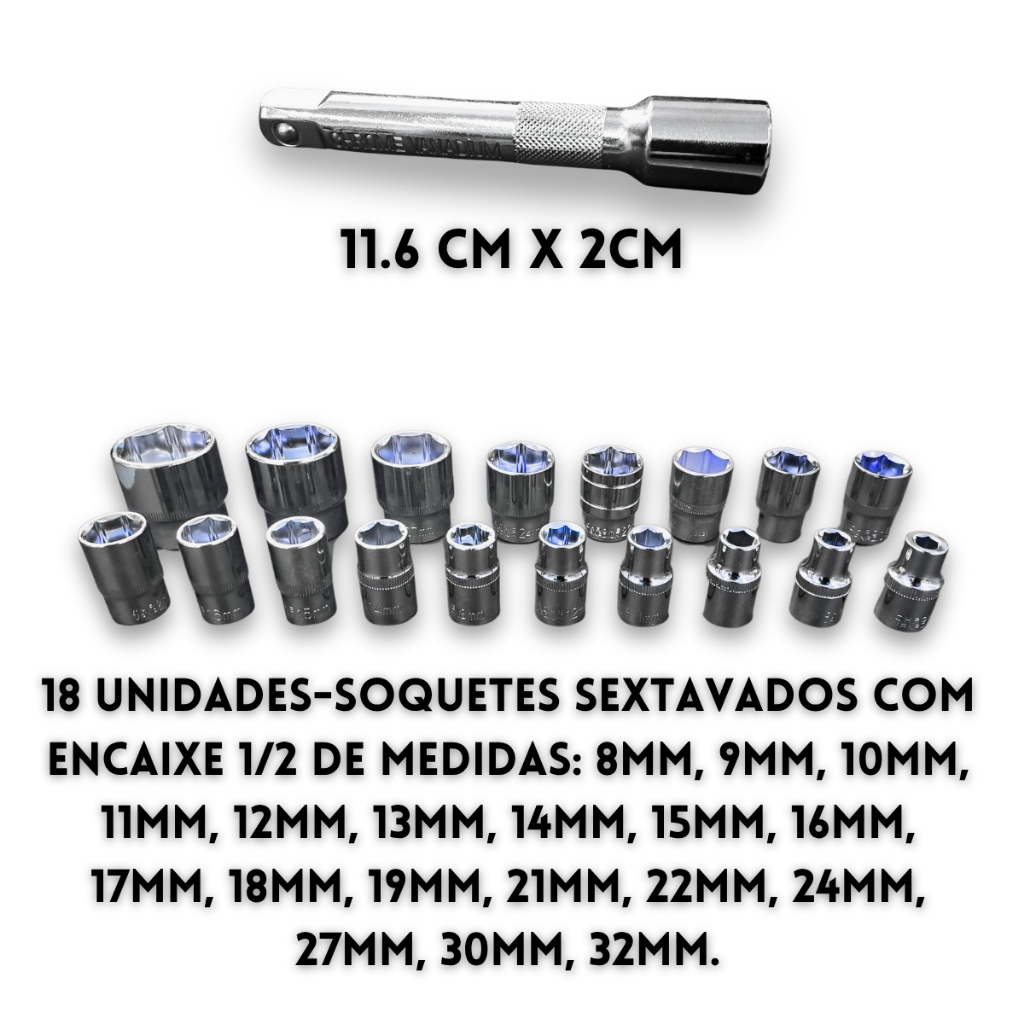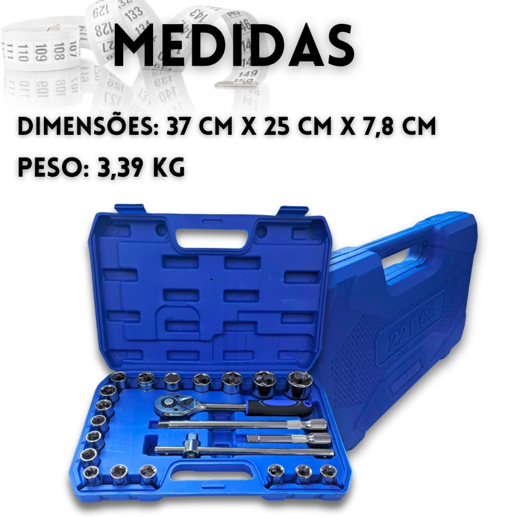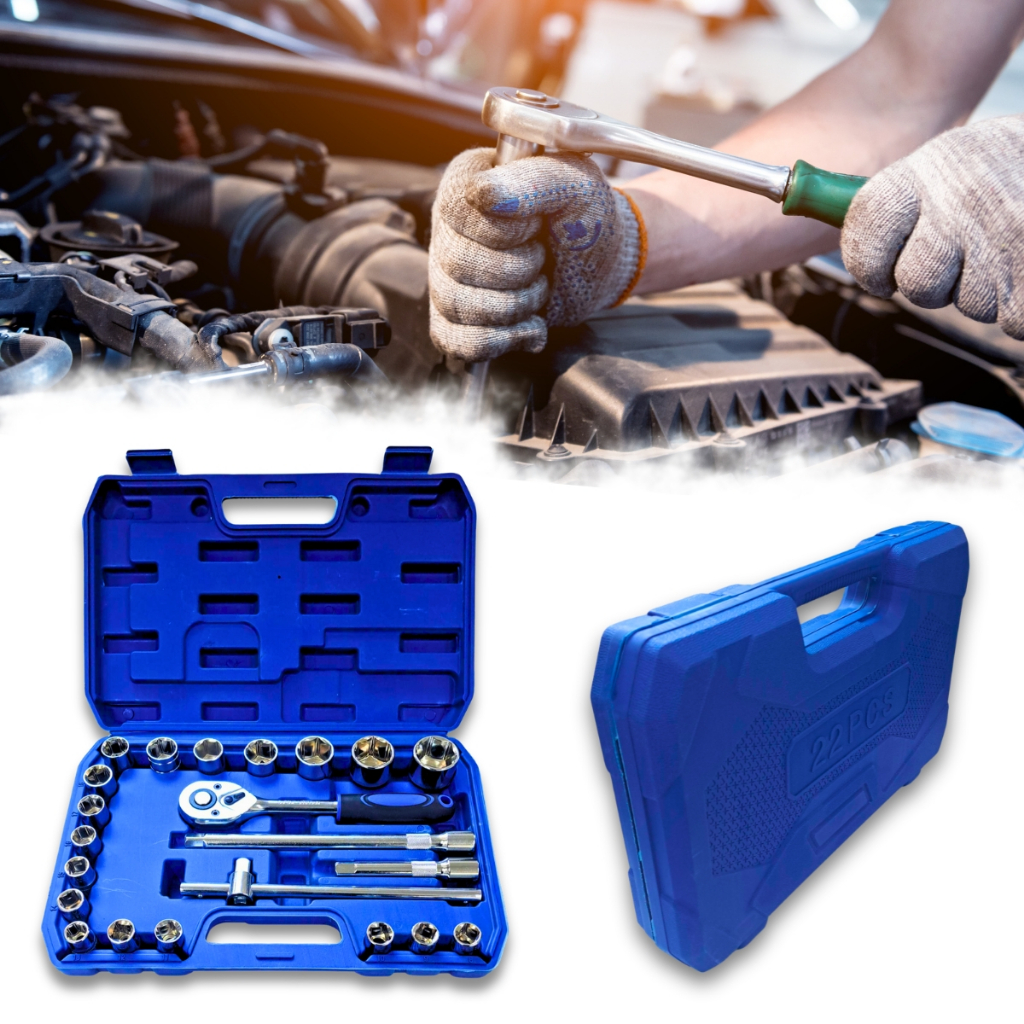 Jogo Soquetes 22 Peças 8 A 32mm Kit De Ferramentas Completo Com Maleta