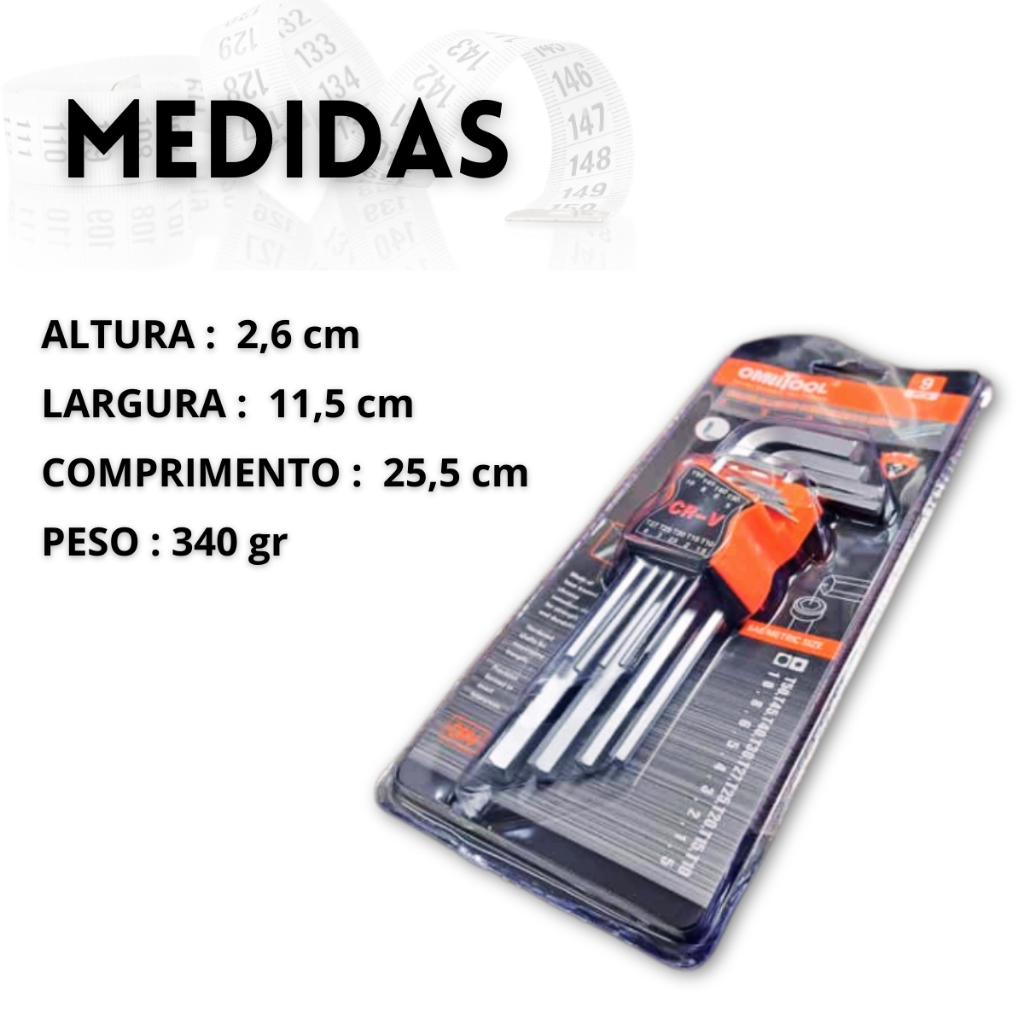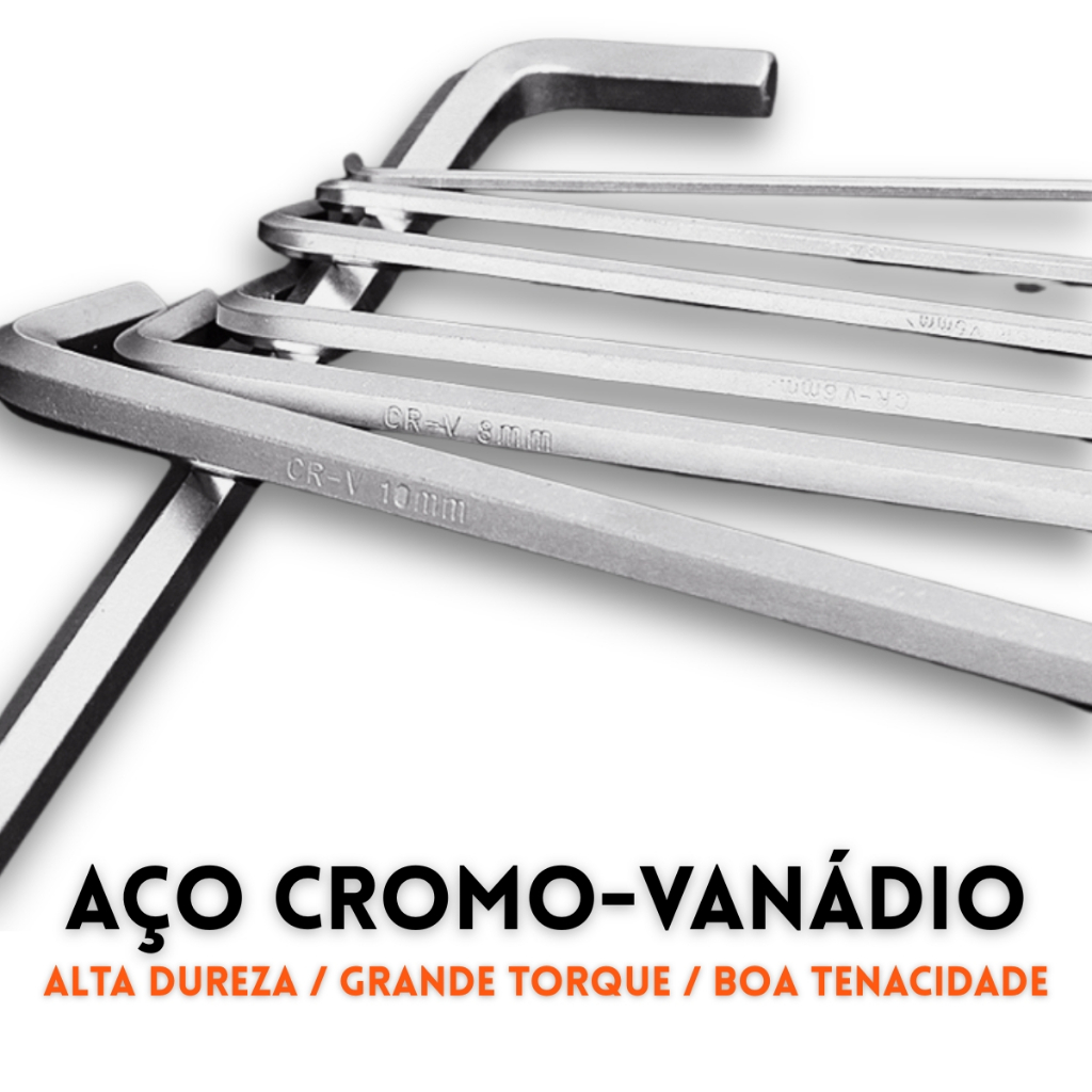 Kit Chave Allen 9 Peças Aço CrV Cabeça Plana Hexagonal