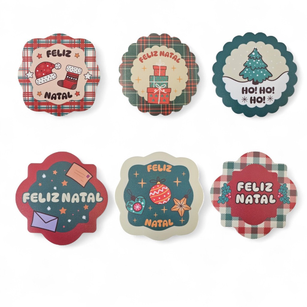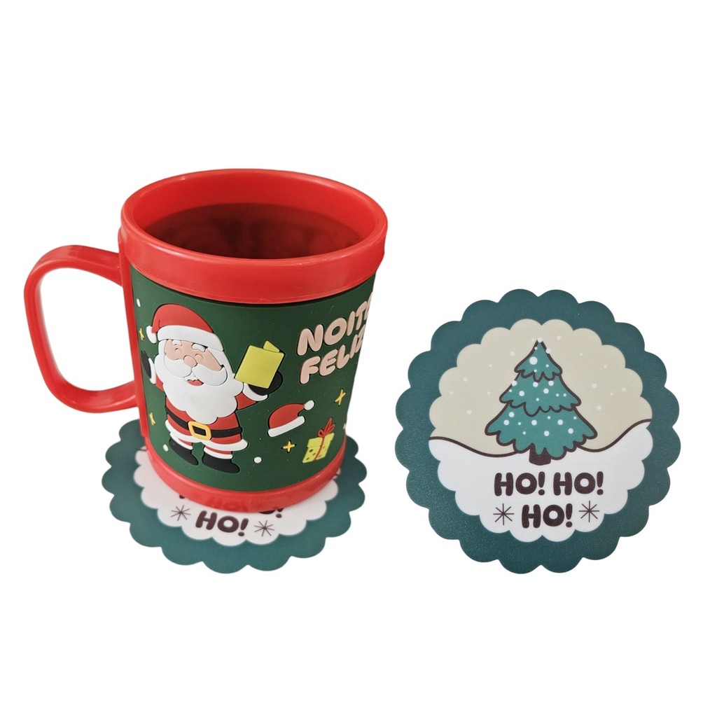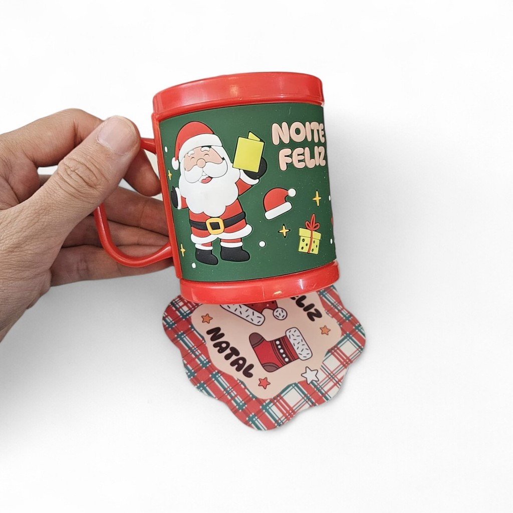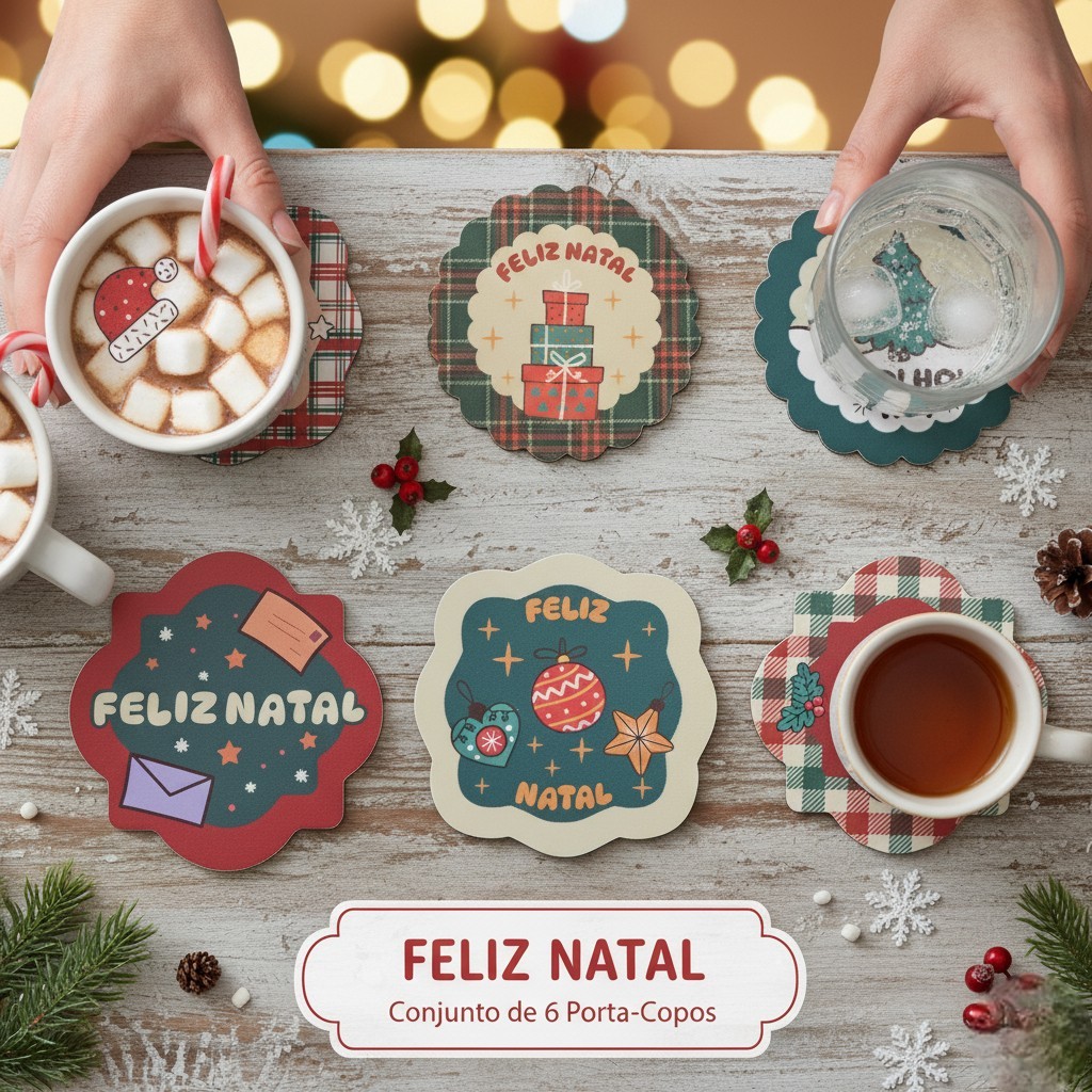 Porta Copos Natalino Estampado Descanso De Copos Natal 24pcs