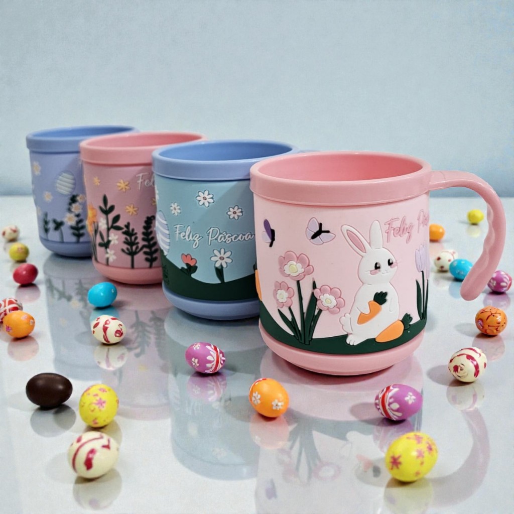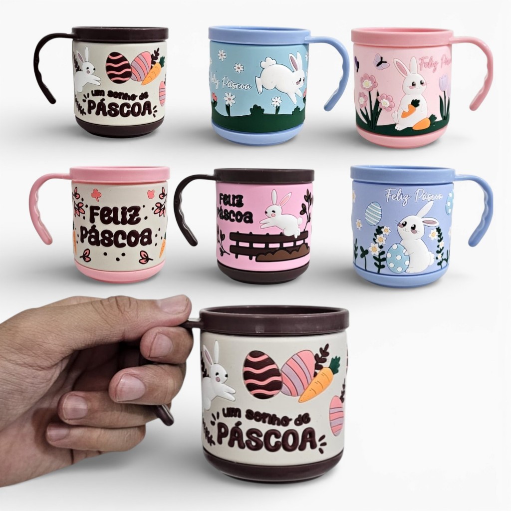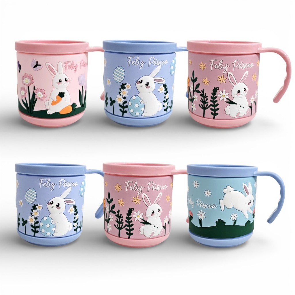 Kit 6 Canecas De Páscoa 200ml Estampas C/ Relevo Coelho 8cm