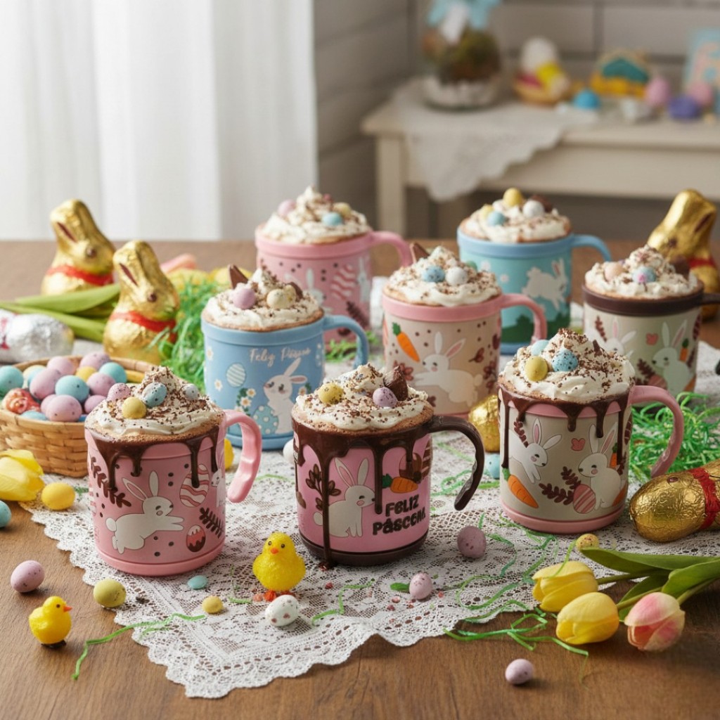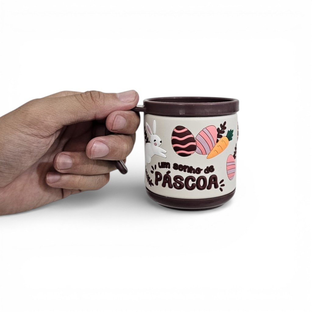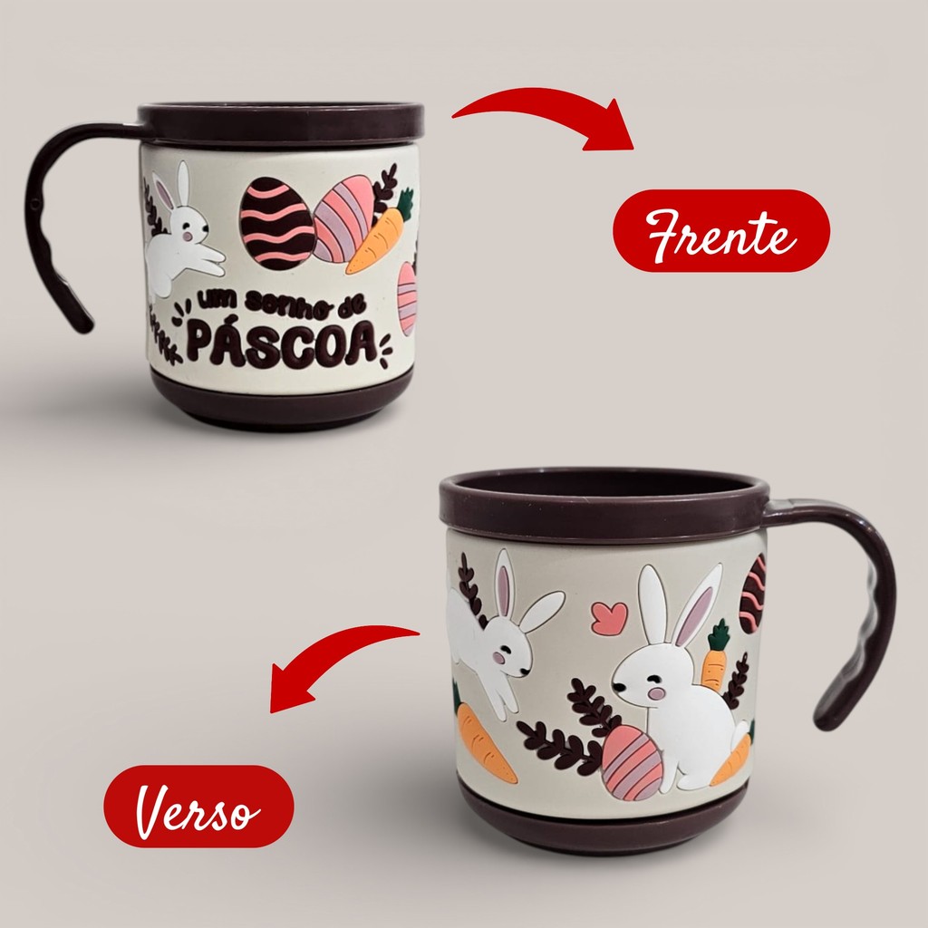 Kit 6 Canecas De Páscoa 200ml Estampas C/ Relevo Coelho 8cm