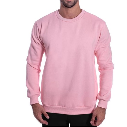 Moletom Rosa Masculino Gola Redonda Sem Bolso e Capuz