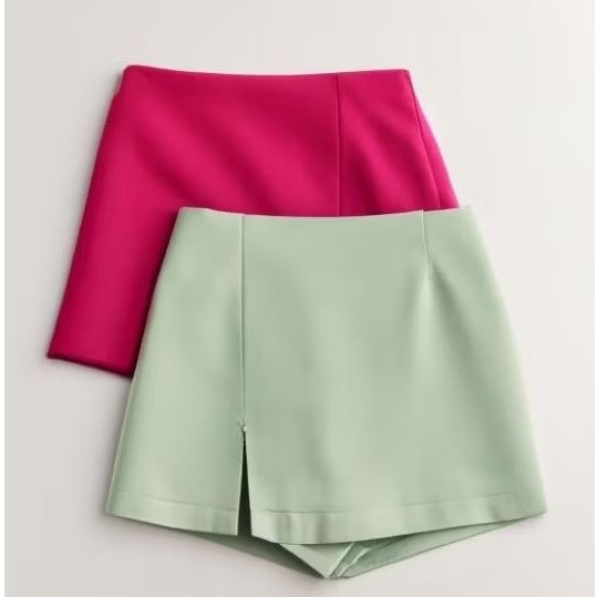 SHORT SAIA FEMININO CINTURA ALTA RECORTE COM FENDA LATERAL VÁRIAS CORES
