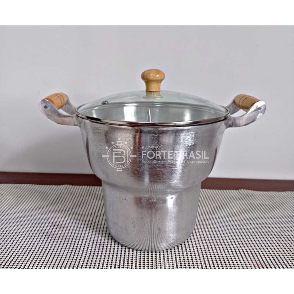 cuscuzeiro De Alumínio Batido/ Fundido Grande N20 C/ Tampa De Vidro ou de alumínio grosso