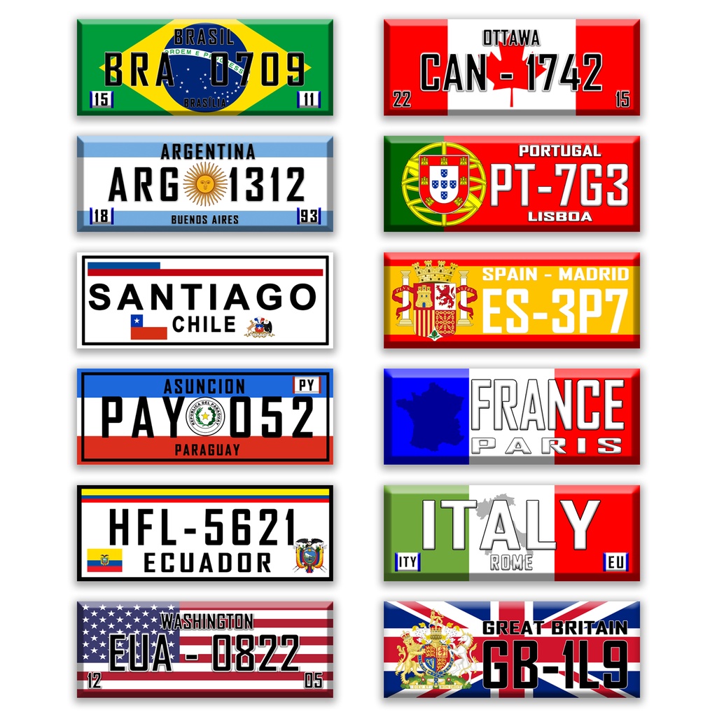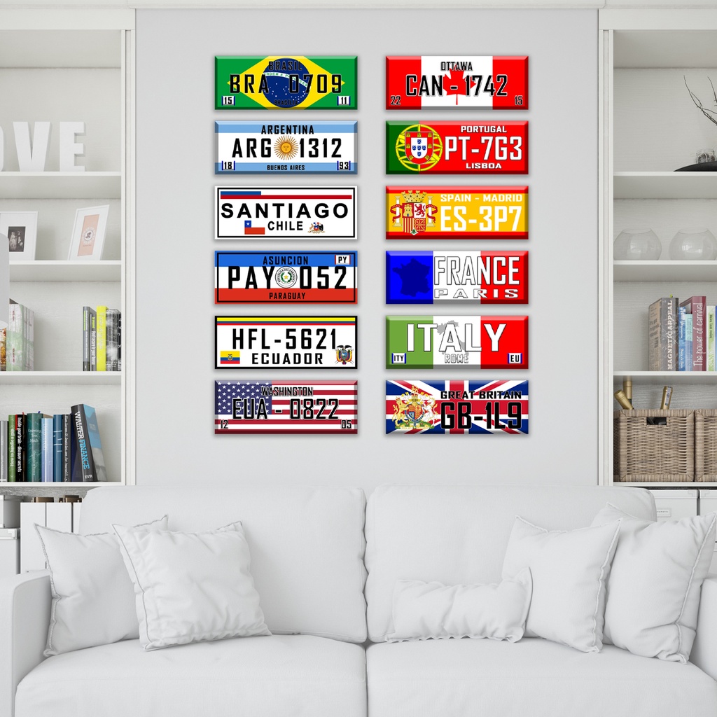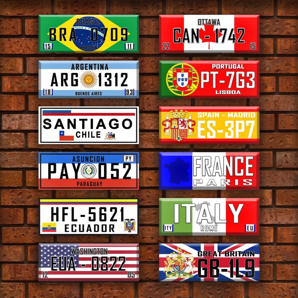 Kit 12 Placas Decorativas Carro Países America Do Sul Europa MDF 28x11cm