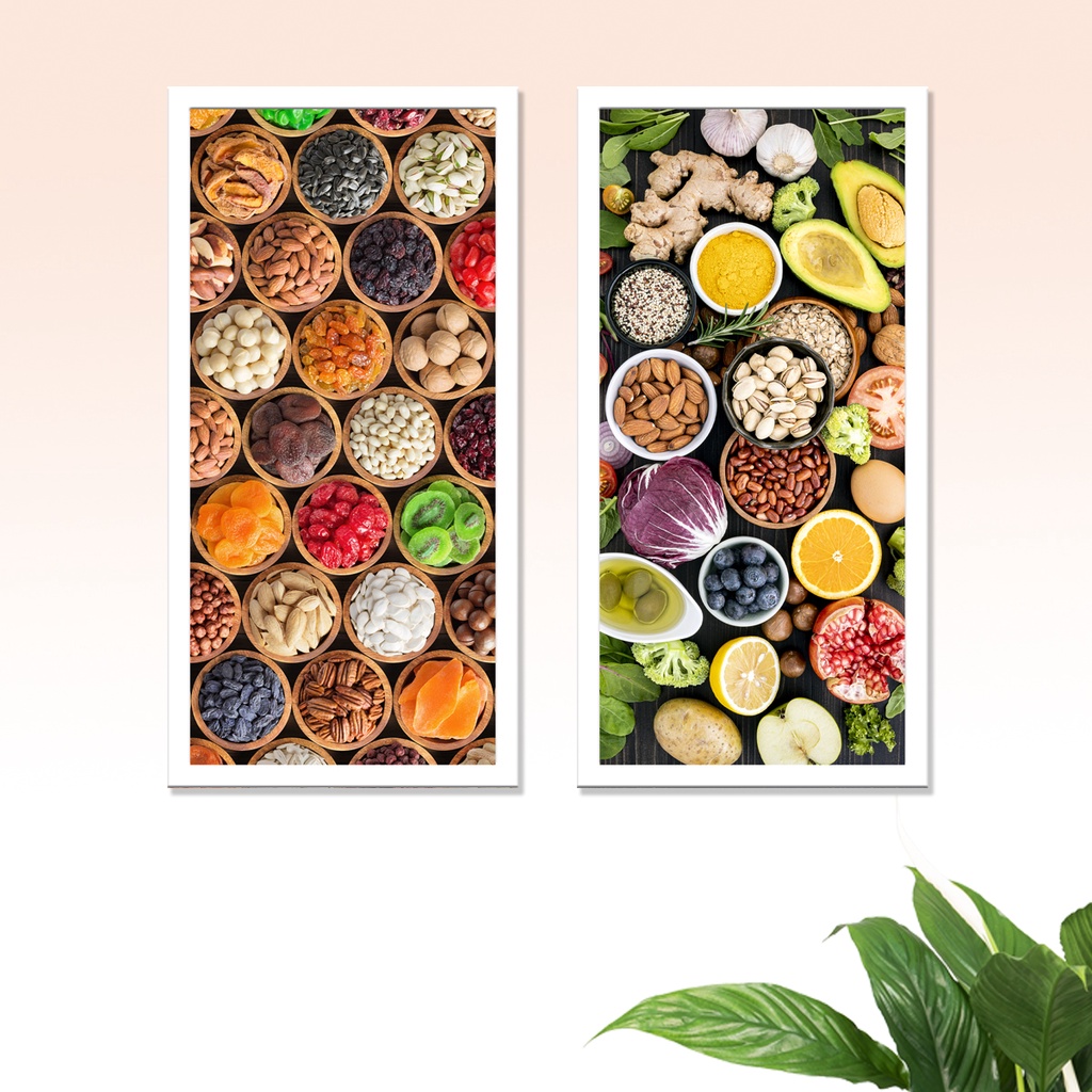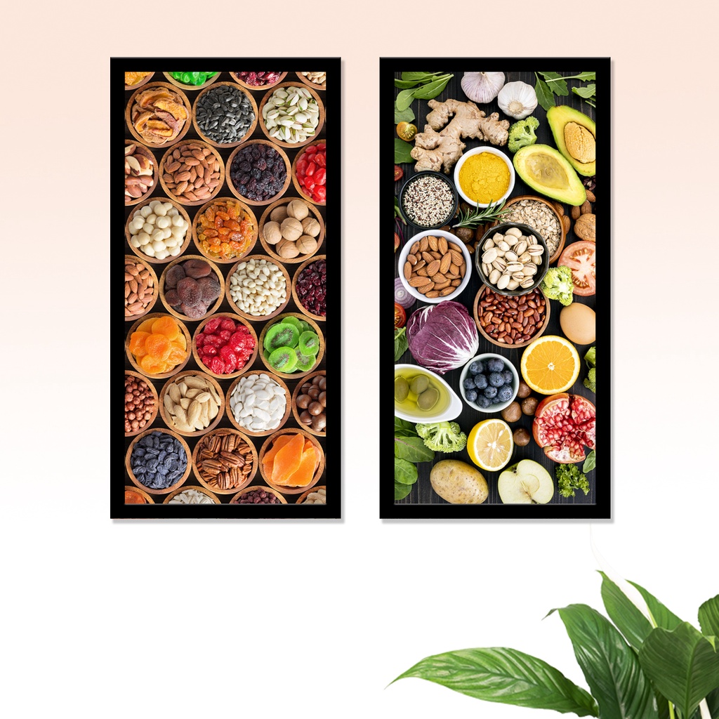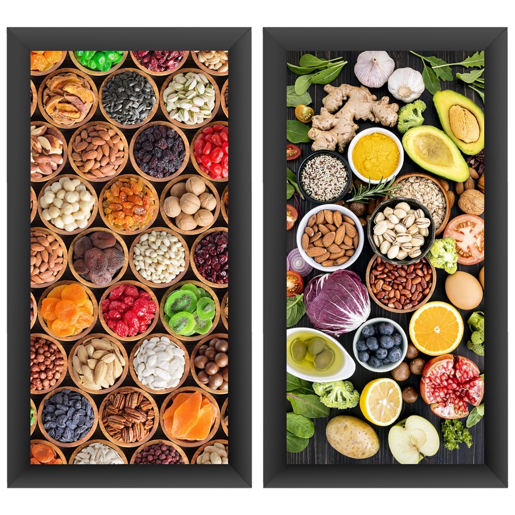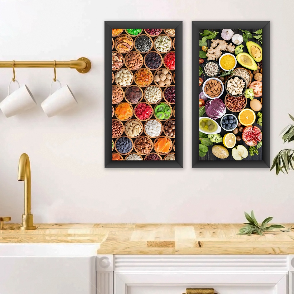 Kit 2 Quadrinhos Decorativos Parede Cozinha Gourmet Moldura 43x23cm Comidas