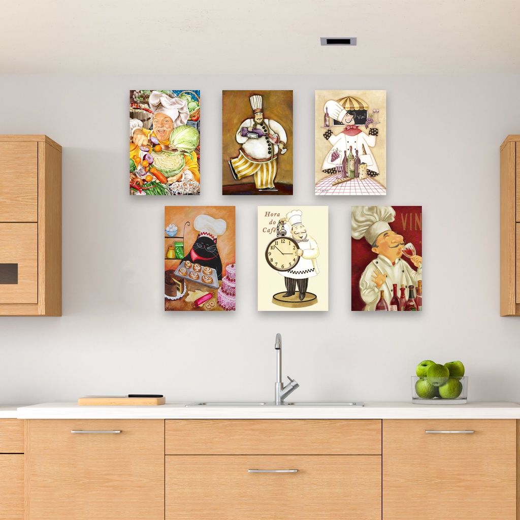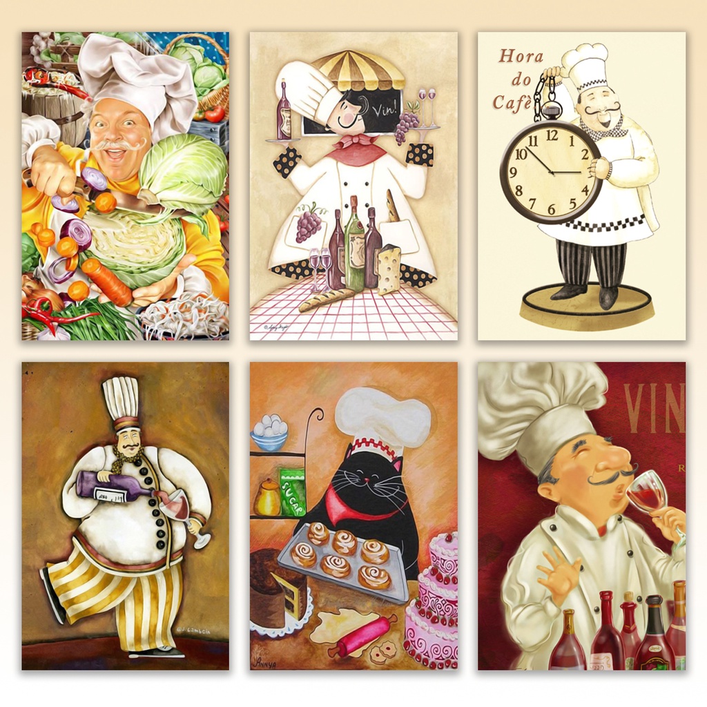 Kit 6 Quadros Placas Decorativas Cozinha 30x20 MDF Vintage Cozinheiros Retro