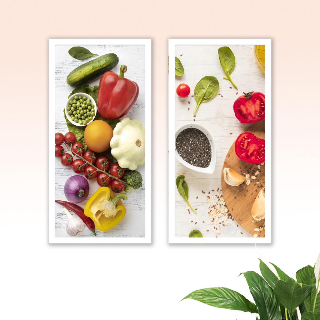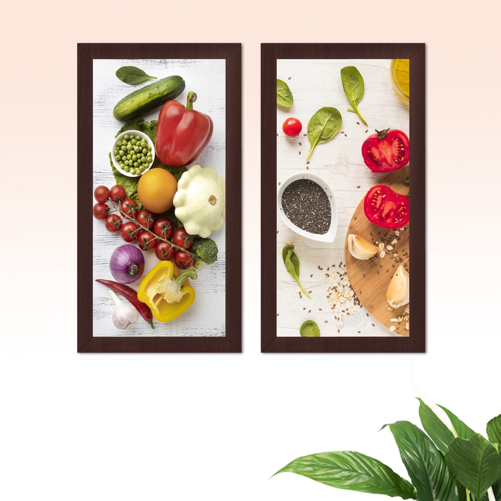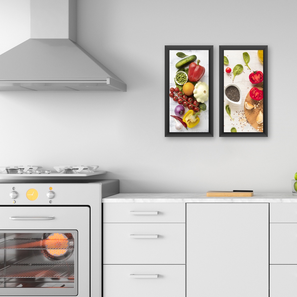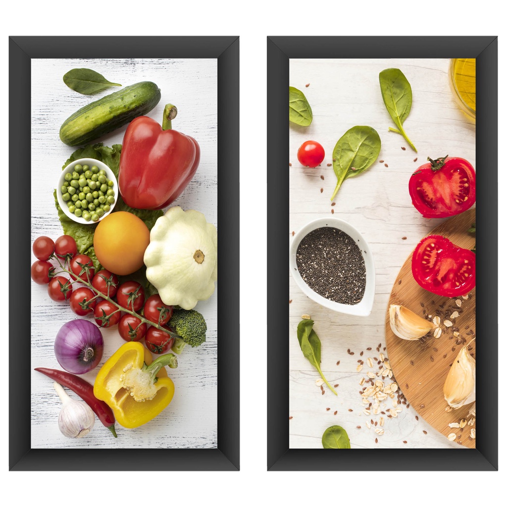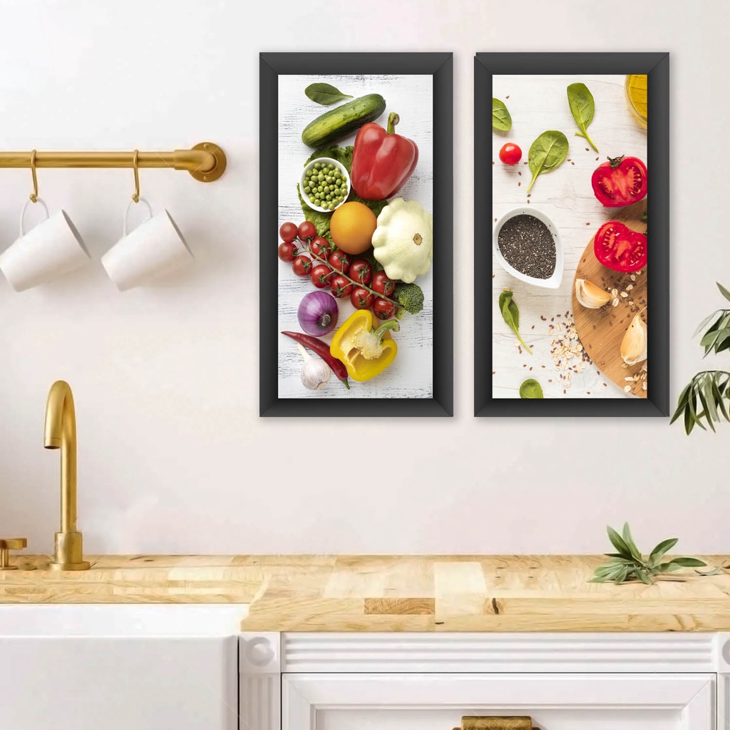 Quadros Decorativos Cozinha Gourmet 2 Peças 43x23cm Moldura Temperos Comidas Restaurante Lanchonete