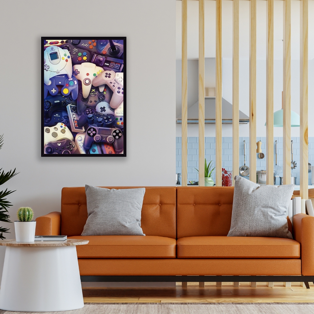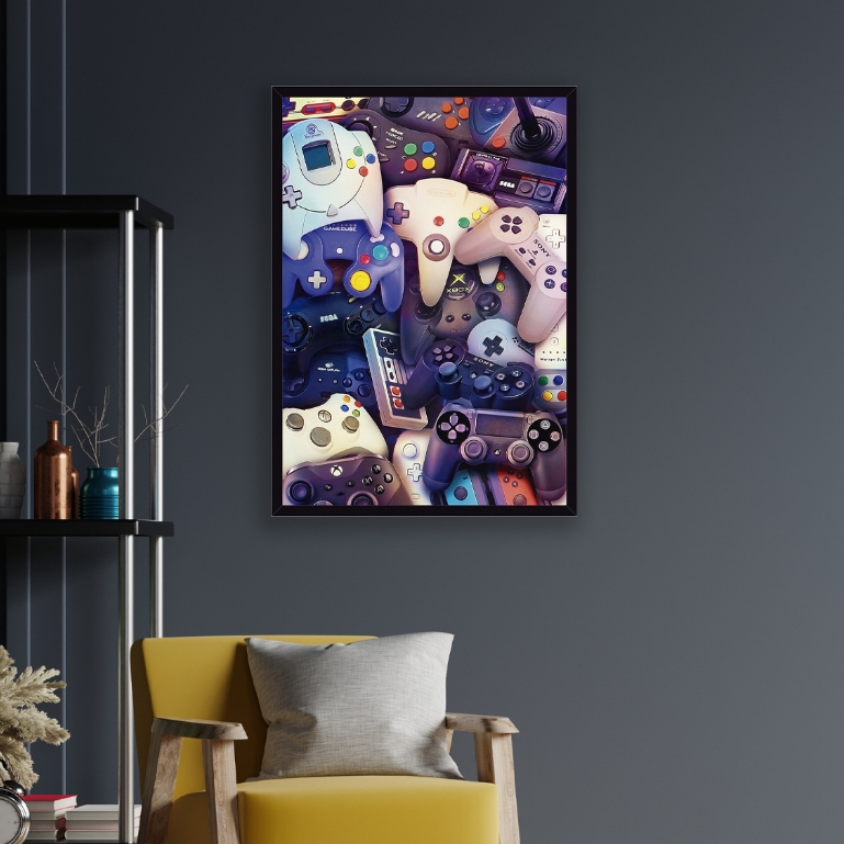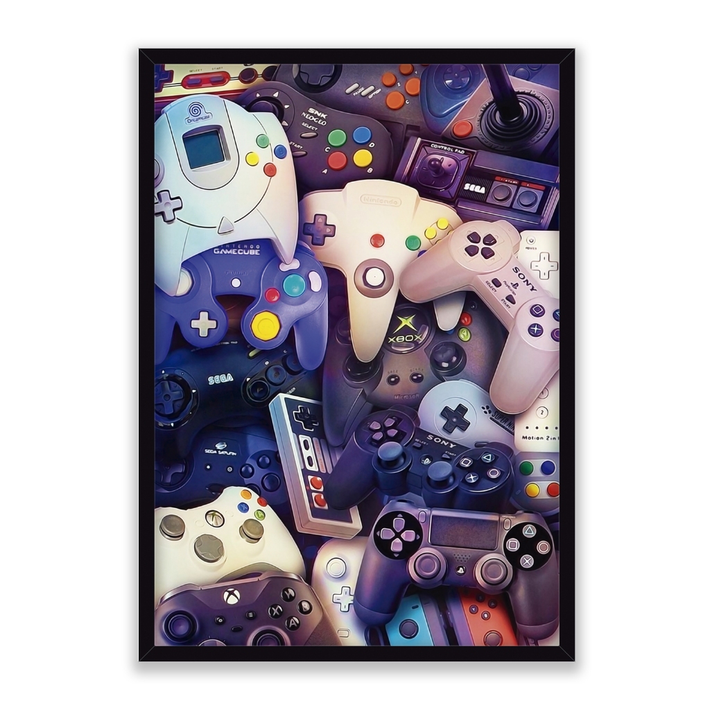Quadro Decorativo Quarto Gamer Jogos Geek Nerd Video Games Manetes Moldura Grande 63x43cm Luxo