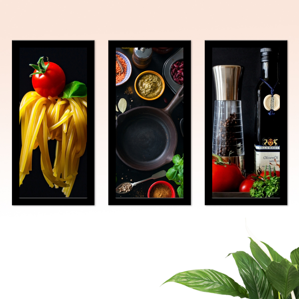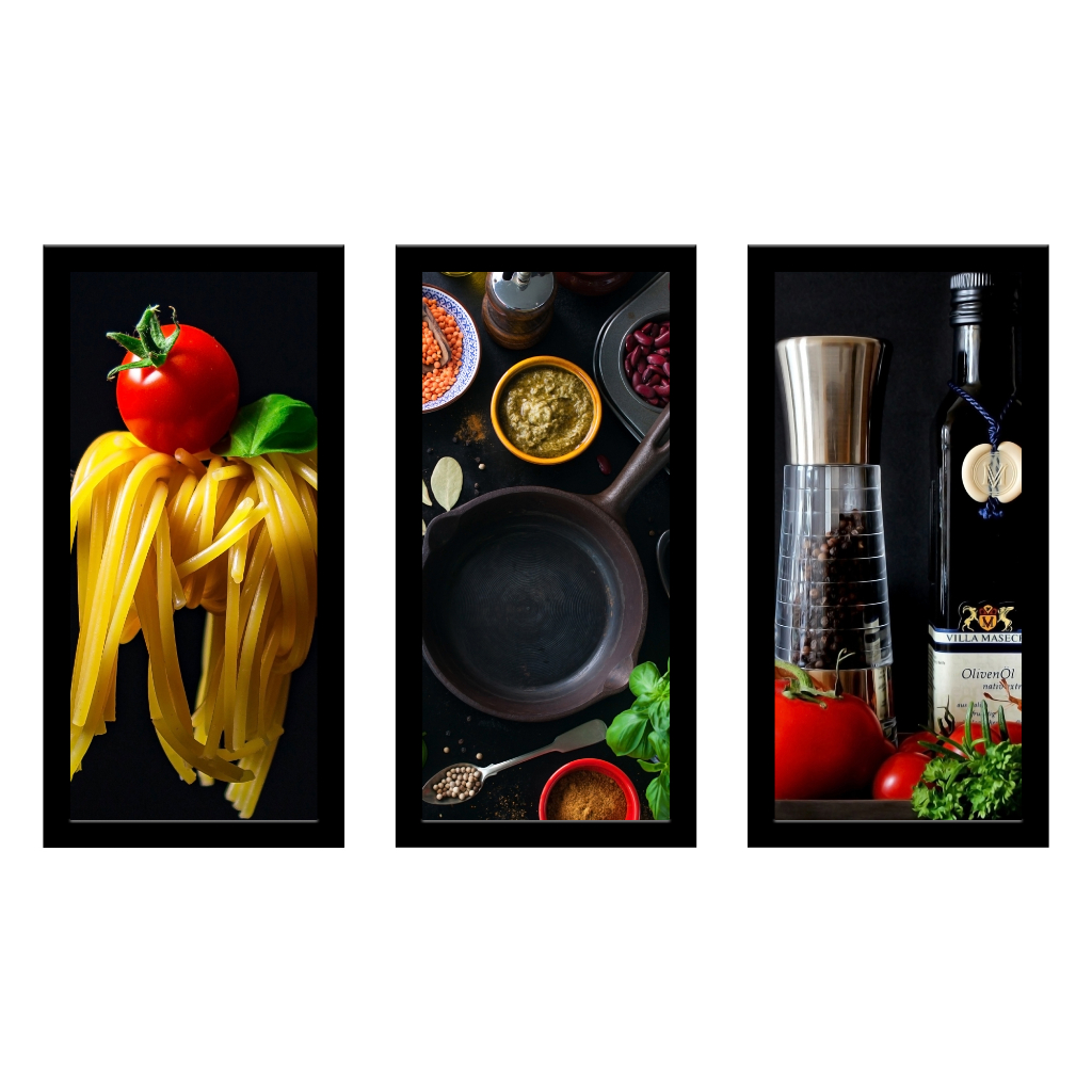 Quadros Decorativos Cozinha Restaurante Comida Temperos Moldura 43x23cm 3 Peças