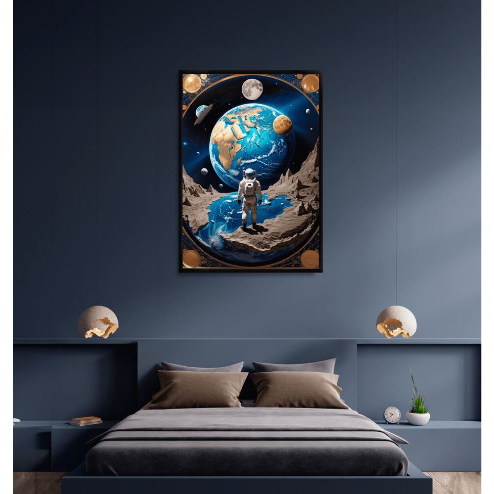 Quadro Decorativo Astronauta Espaço Galáxia Quarto Sala Corredor Moldura Grande 63x43cm Luxo Criativo