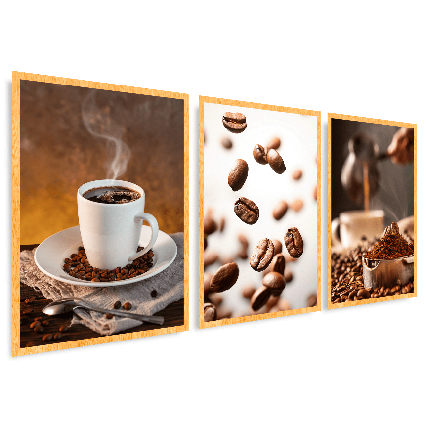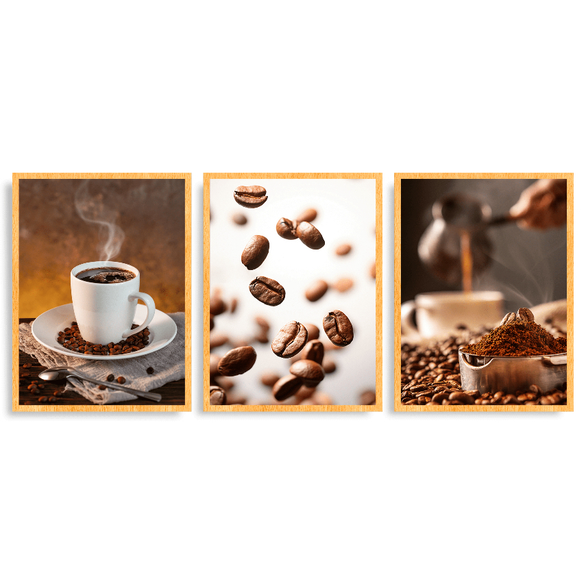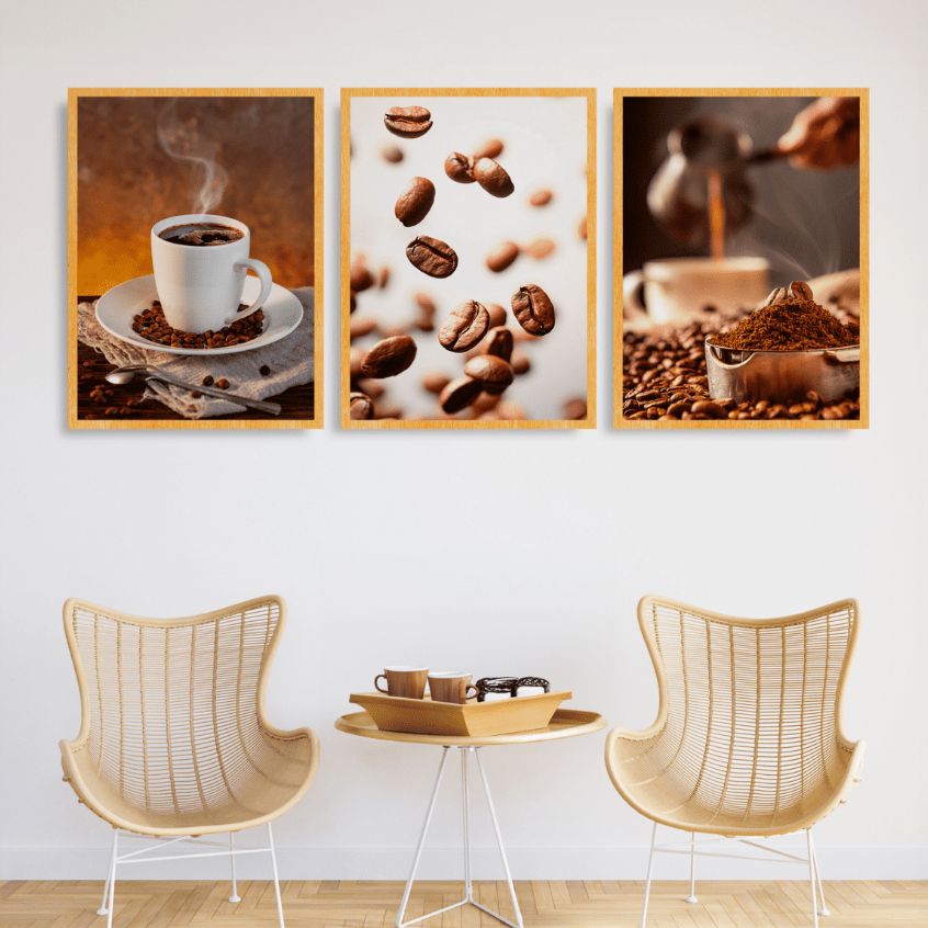Kit 3 Quadros Decorativos Cantinho da Café Grande Xicara Cozinha Gourmet Cafeteria Moldura 63x43cm Luxo