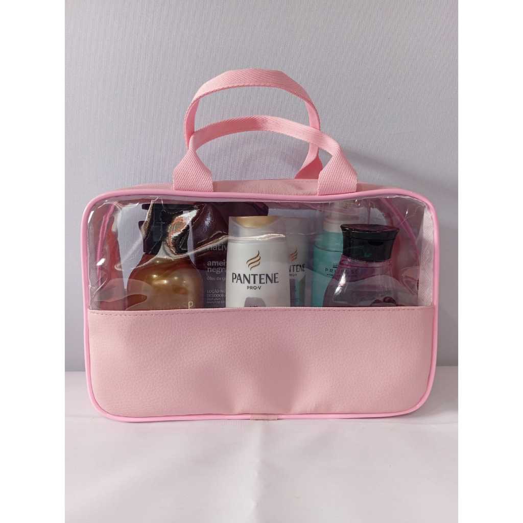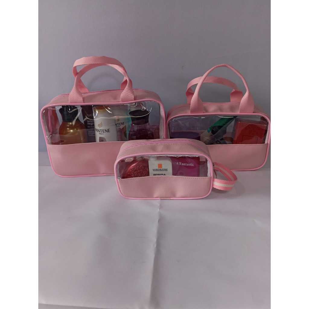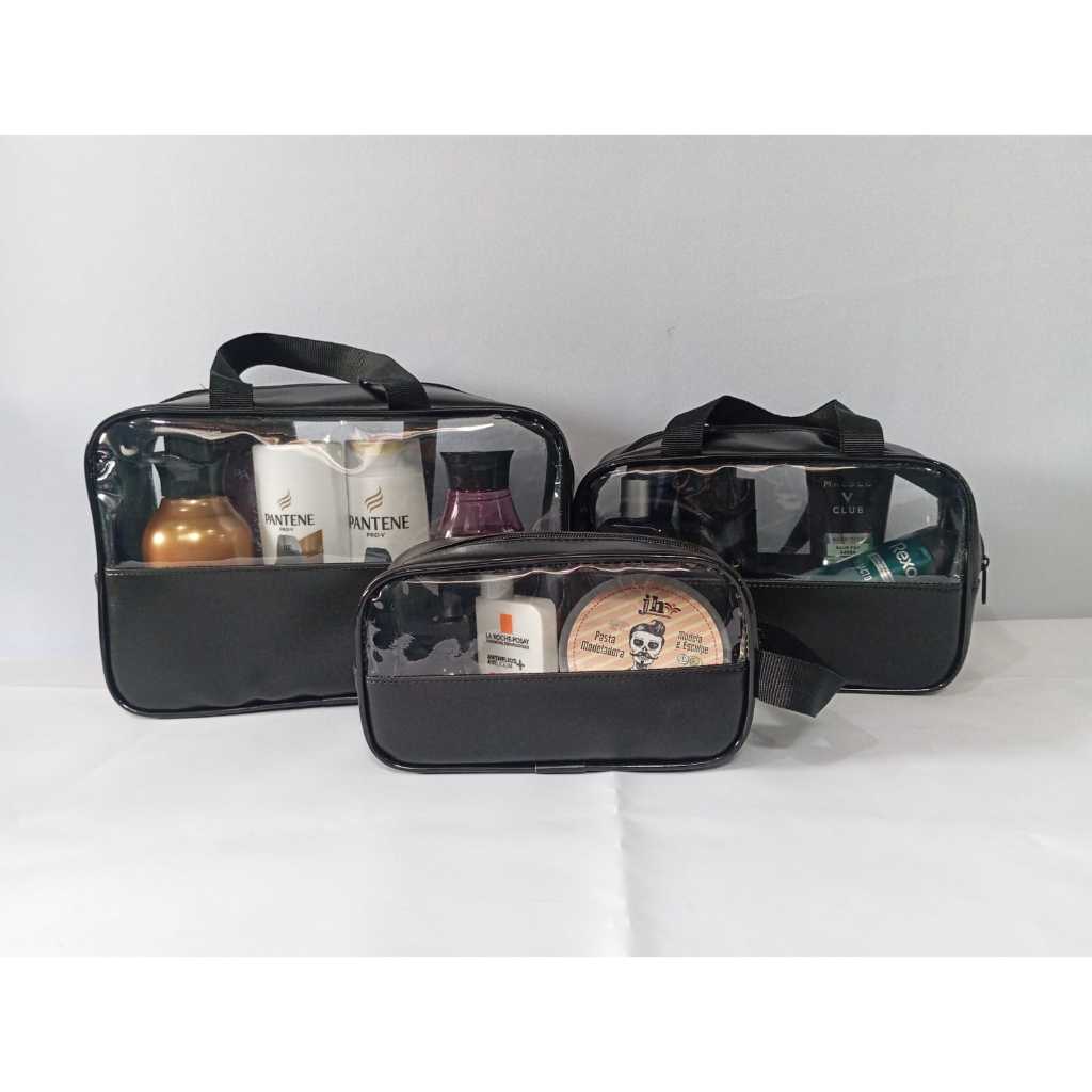 kit 3 unidades Bolsas Portátil Transparente Para Cosméticos Higiene Pessoal necessaire feminina