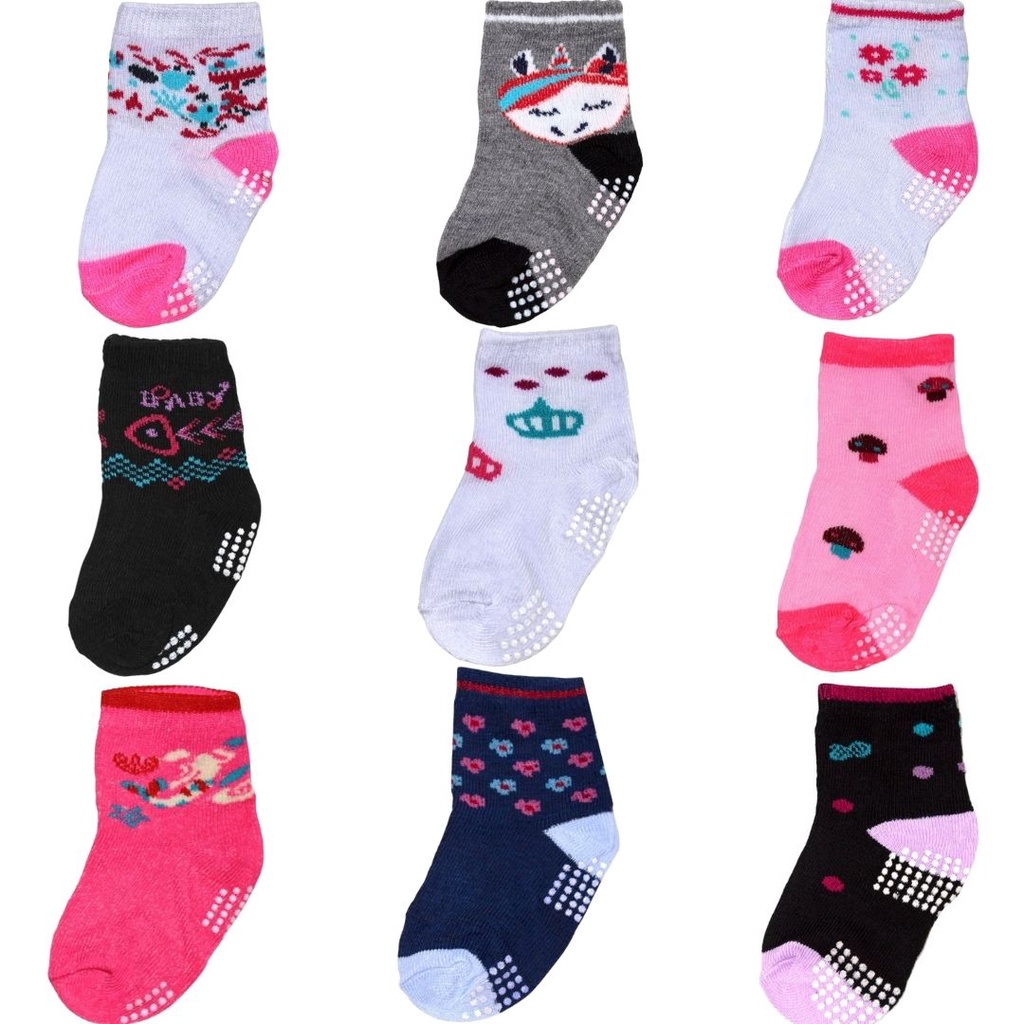 Kit 9 Pares Meia Infantil Bebe Antiderrapante Menino/ Menina