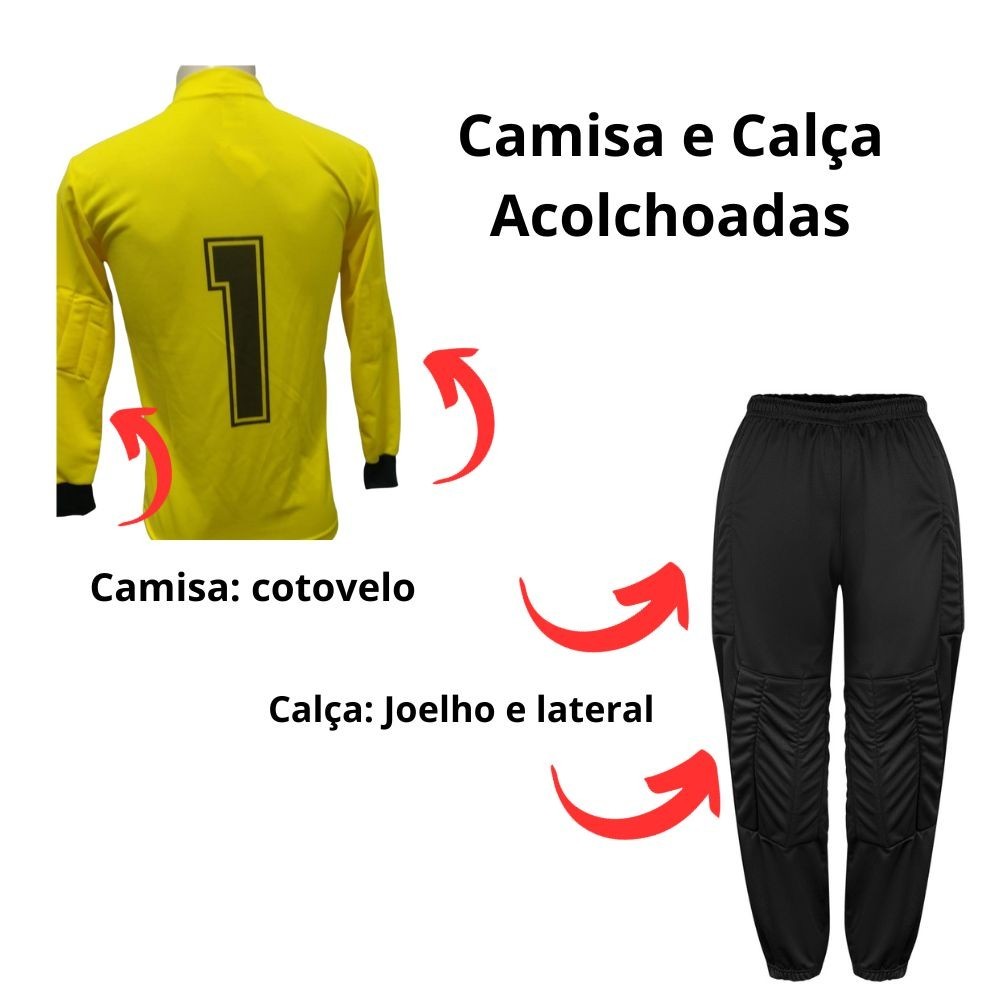 Kit para Goleiro De Futebol Com Camisa e Calça Acolchoada Infantil Juvenil