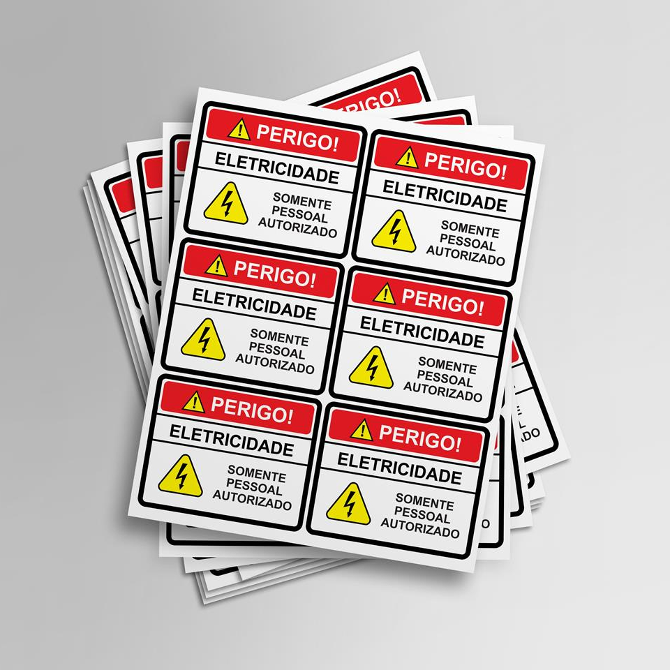 Adesivo de Sinalização Diversos Alta voltagem Cuidado Eletricidade 10x6cm