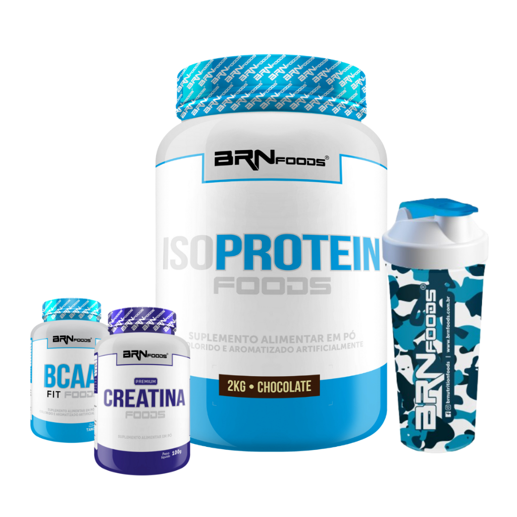 Kit Iso Protein Foods 2kg + Premium Creatina 100g + BCAA 100g + Coqueteleira - BRN Foods