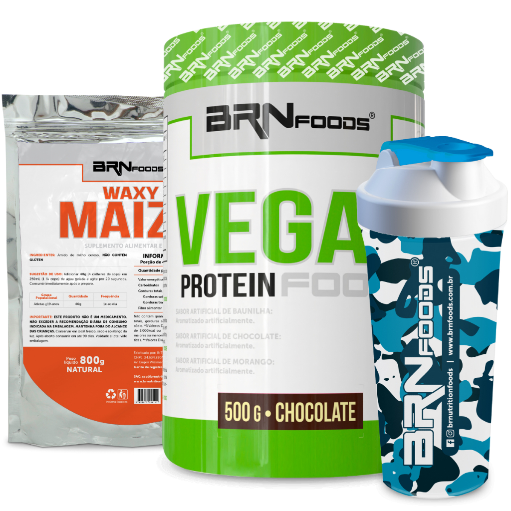 Kit Proteína Vegana Vegan Protein 500g + Waxy Maize 800g + Coqueteleira - BRN Foods