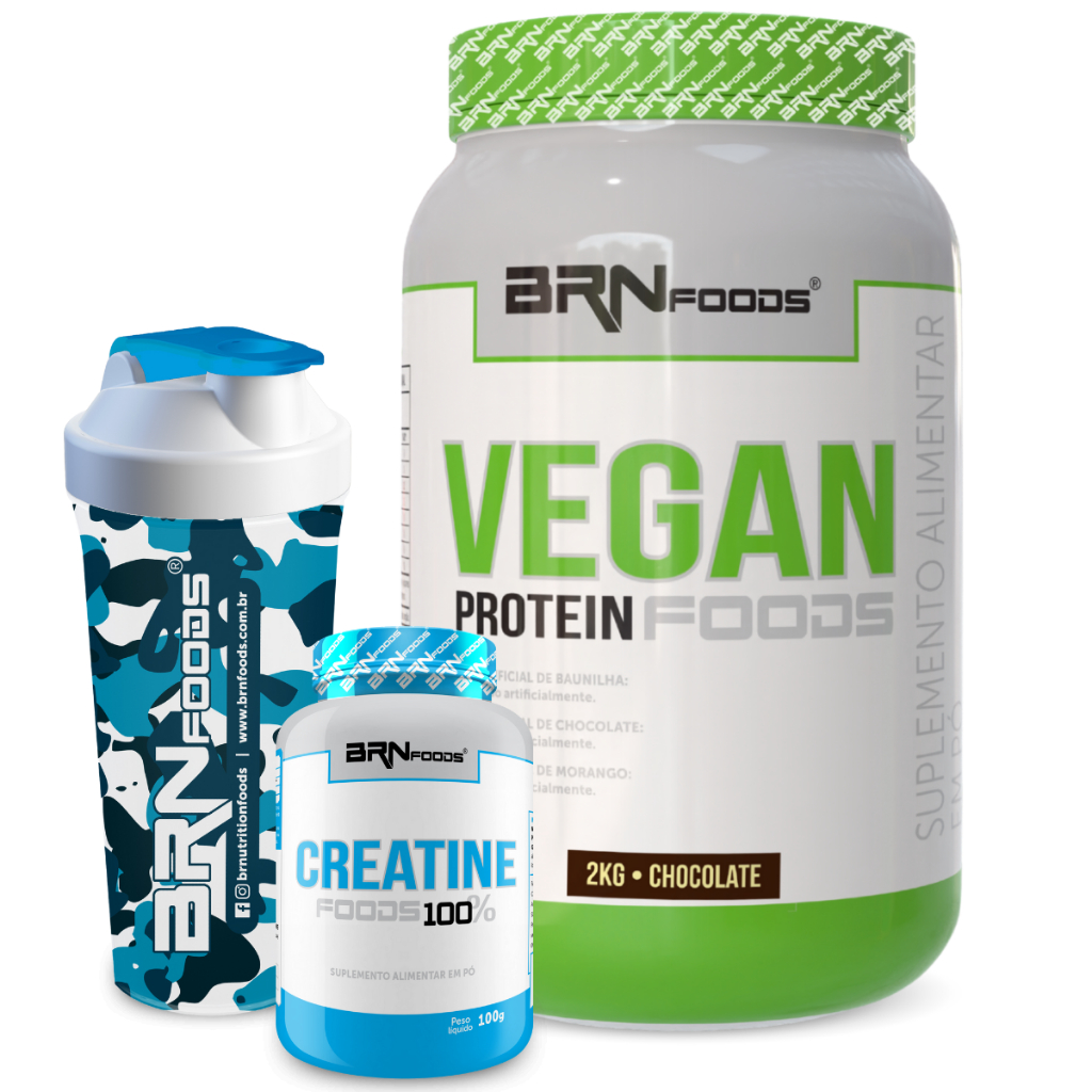 Kit Proteína Vegetal Vegan Protein Foods 2kg + 100% Creatina 100g + Coqueteleira - BRN Foods