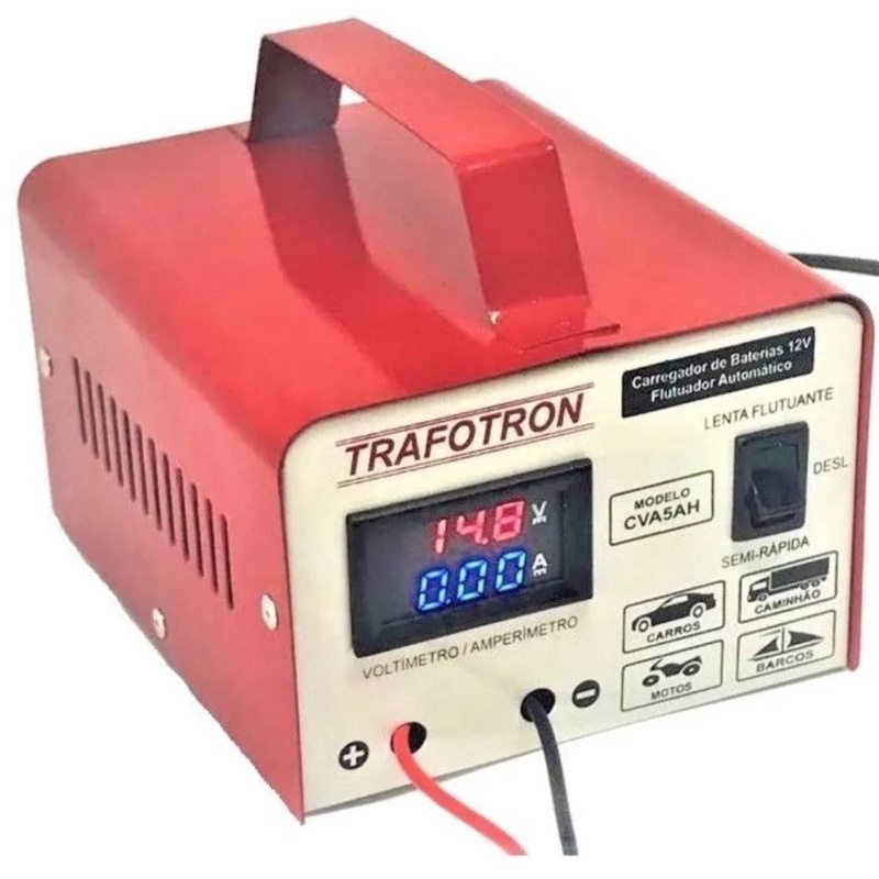 Carregador de bateria CVA 5A/H com voltimetro e amperimetro inteligente flutuante