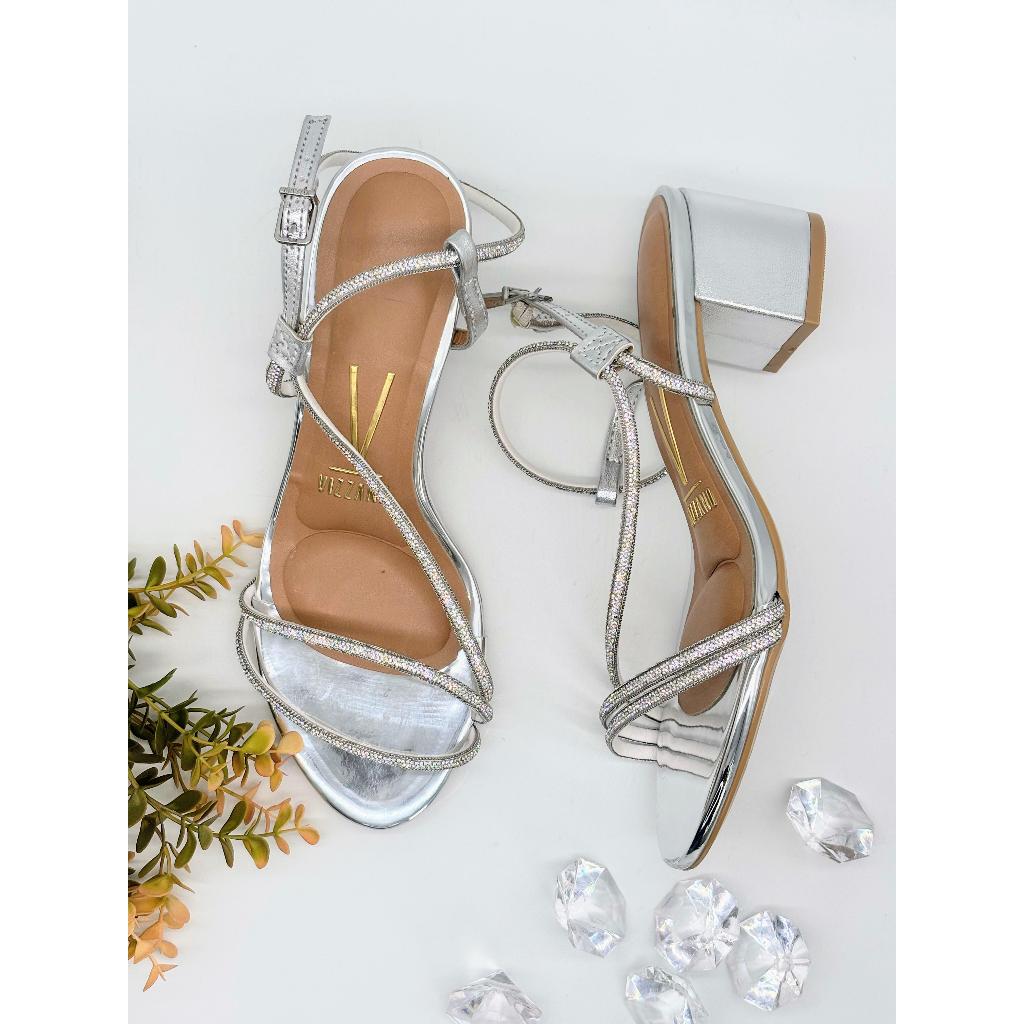 Sandália Salto Bloco Vizzano Metalizado Florença Premium Glamour