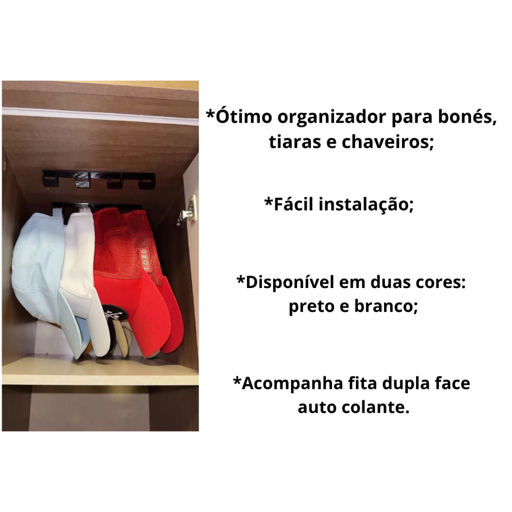 Organizador para Bonés - Gancho de Guarda-Roupas e Armários para Boné - Gancho Suporte