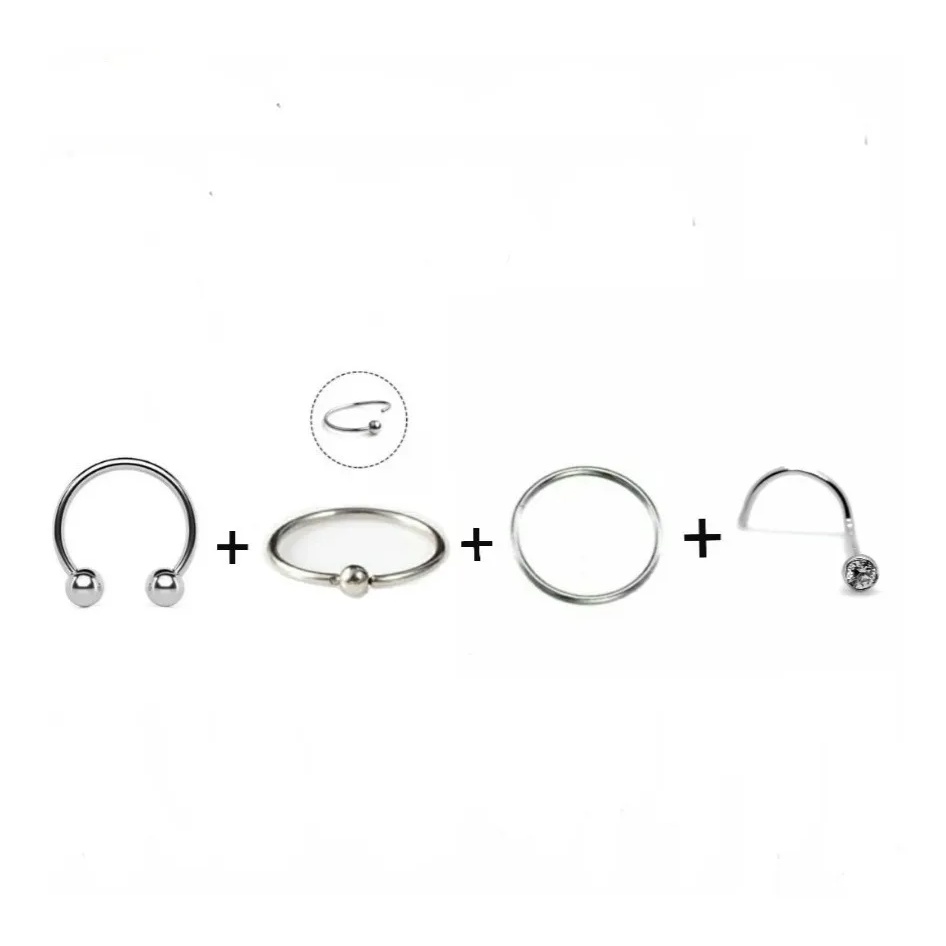 Kit 4 Piercings De Nariz Aço Cirúrgico Nostril Aba do Nariz Antialérgico