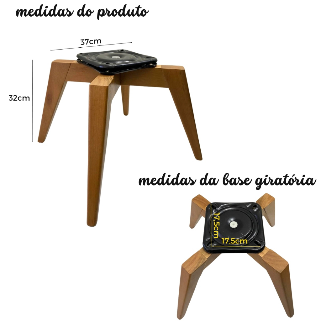Base Giratória 360 graus Madeira P/ Poltrona Pufe