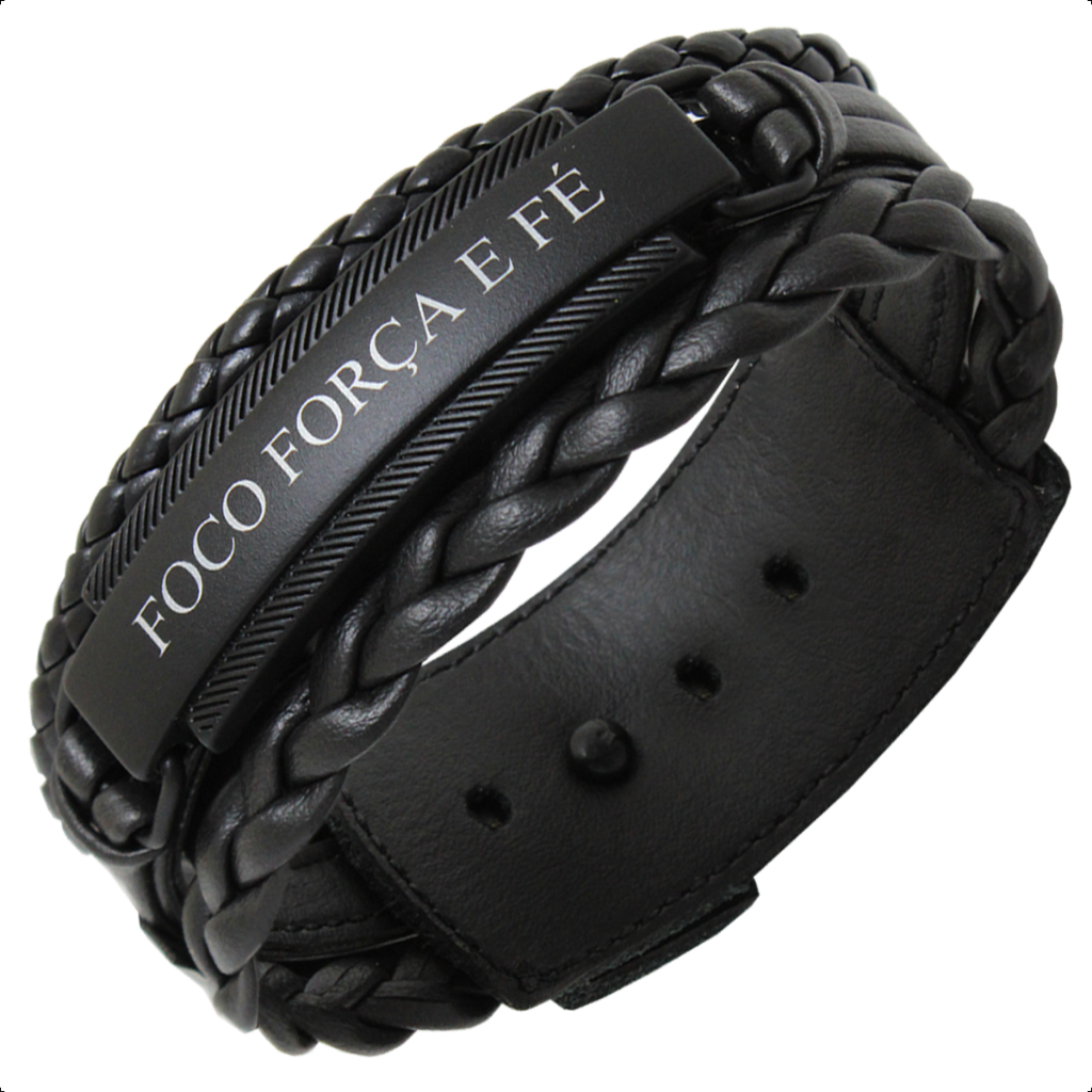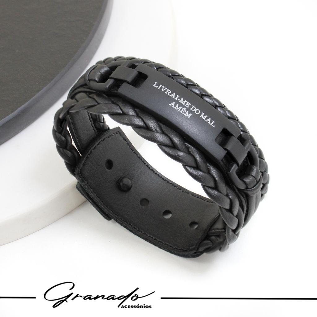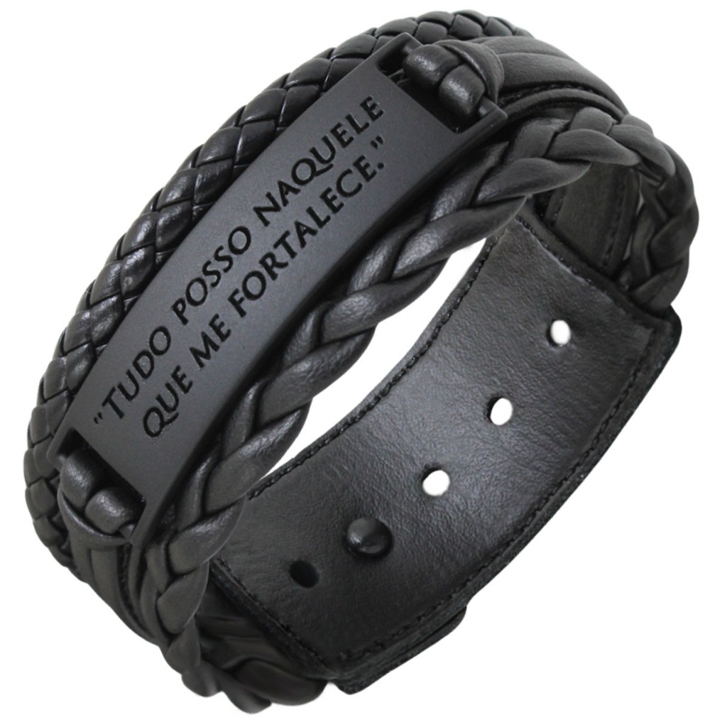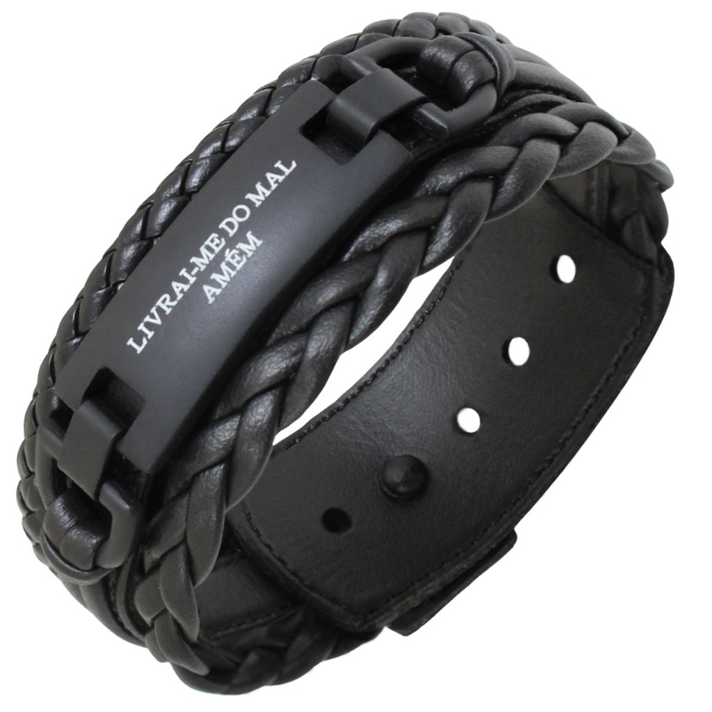 Pulseira de Couro Livrai Mal Jesus Gratidão Foco Força Fé Tudo Posso Deus N Senhora - Várias Opções
