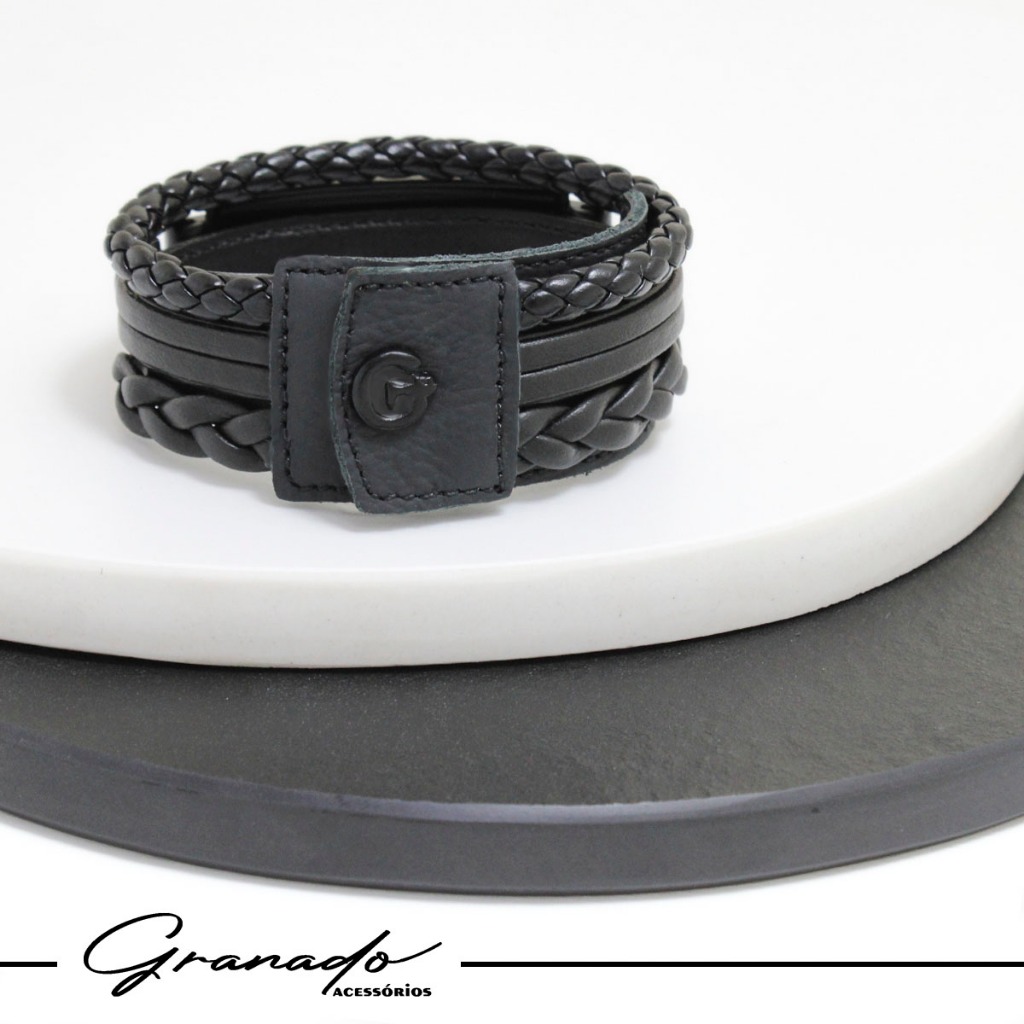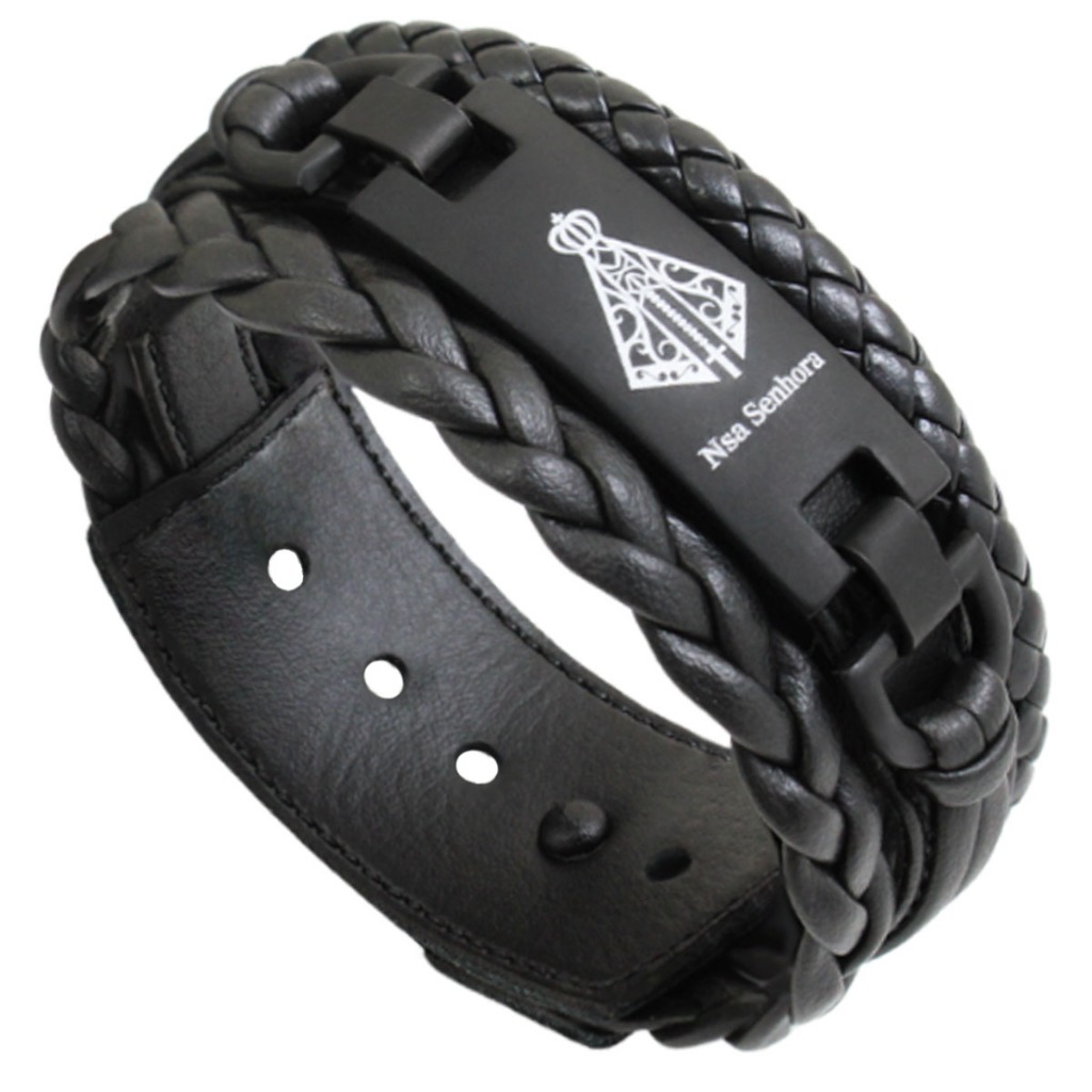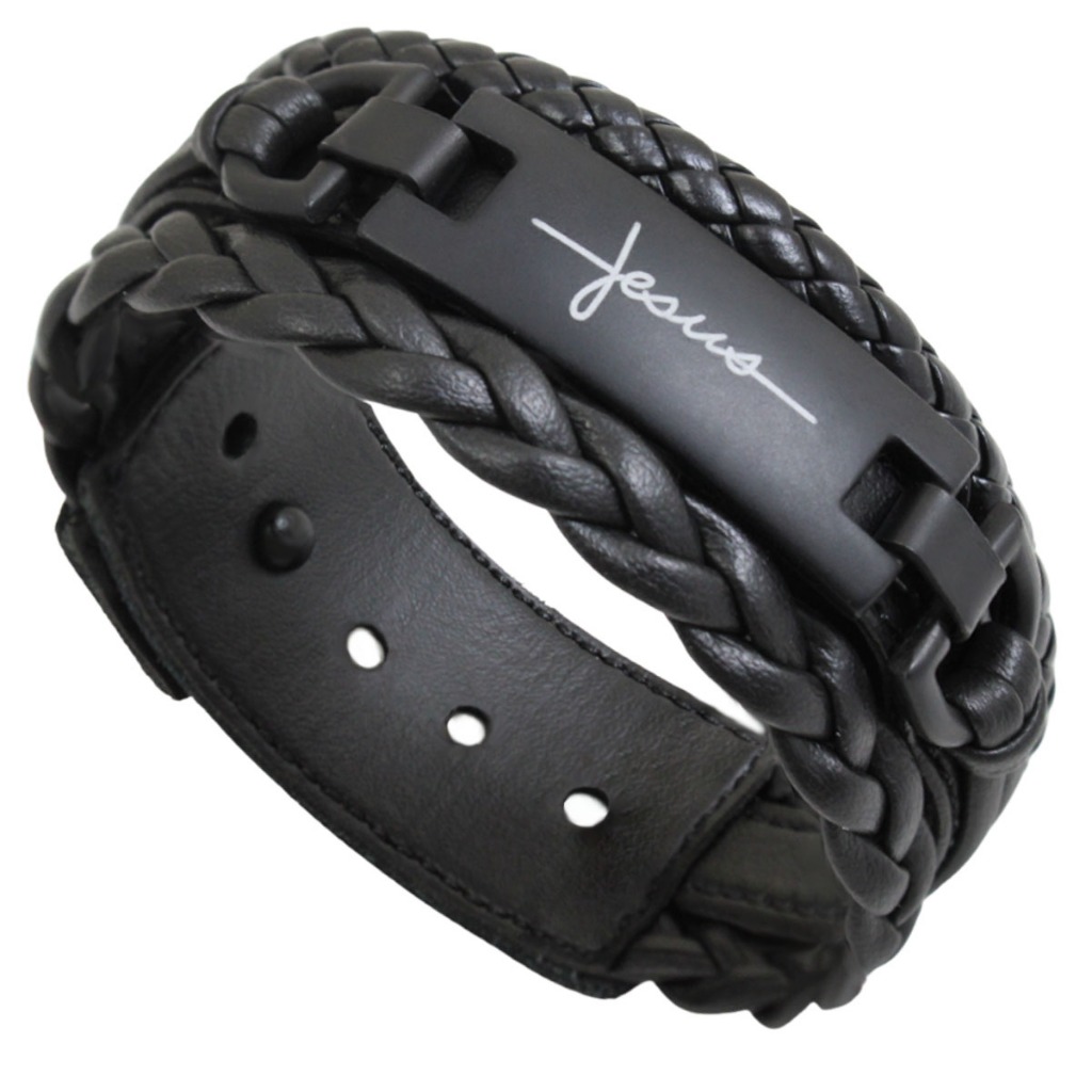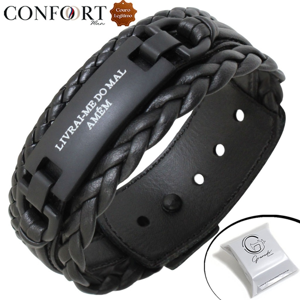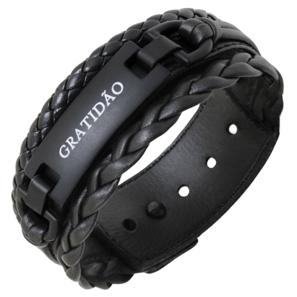 Pulseira de Couro Livrai Mal Jesus Gratidão Foco Força Fé Tudo Posso Deus N Senhora - Várias Opções