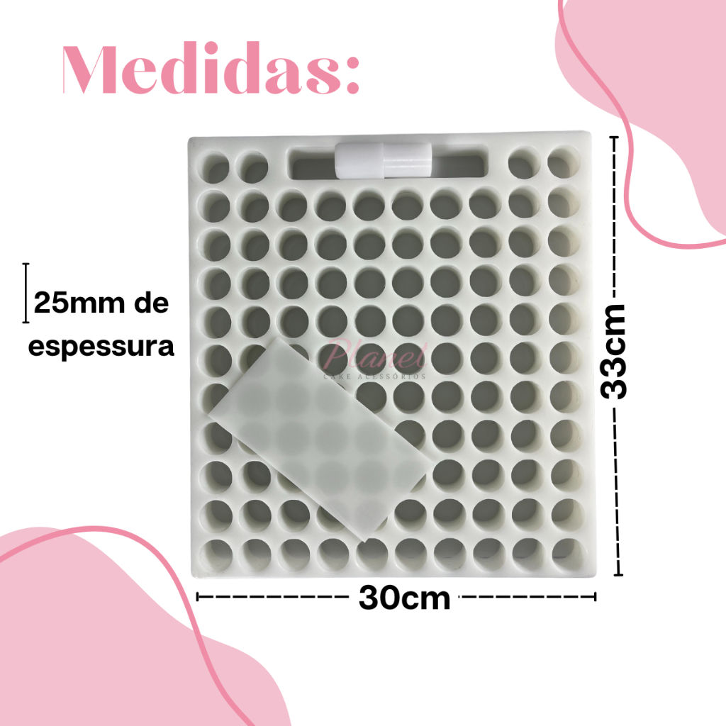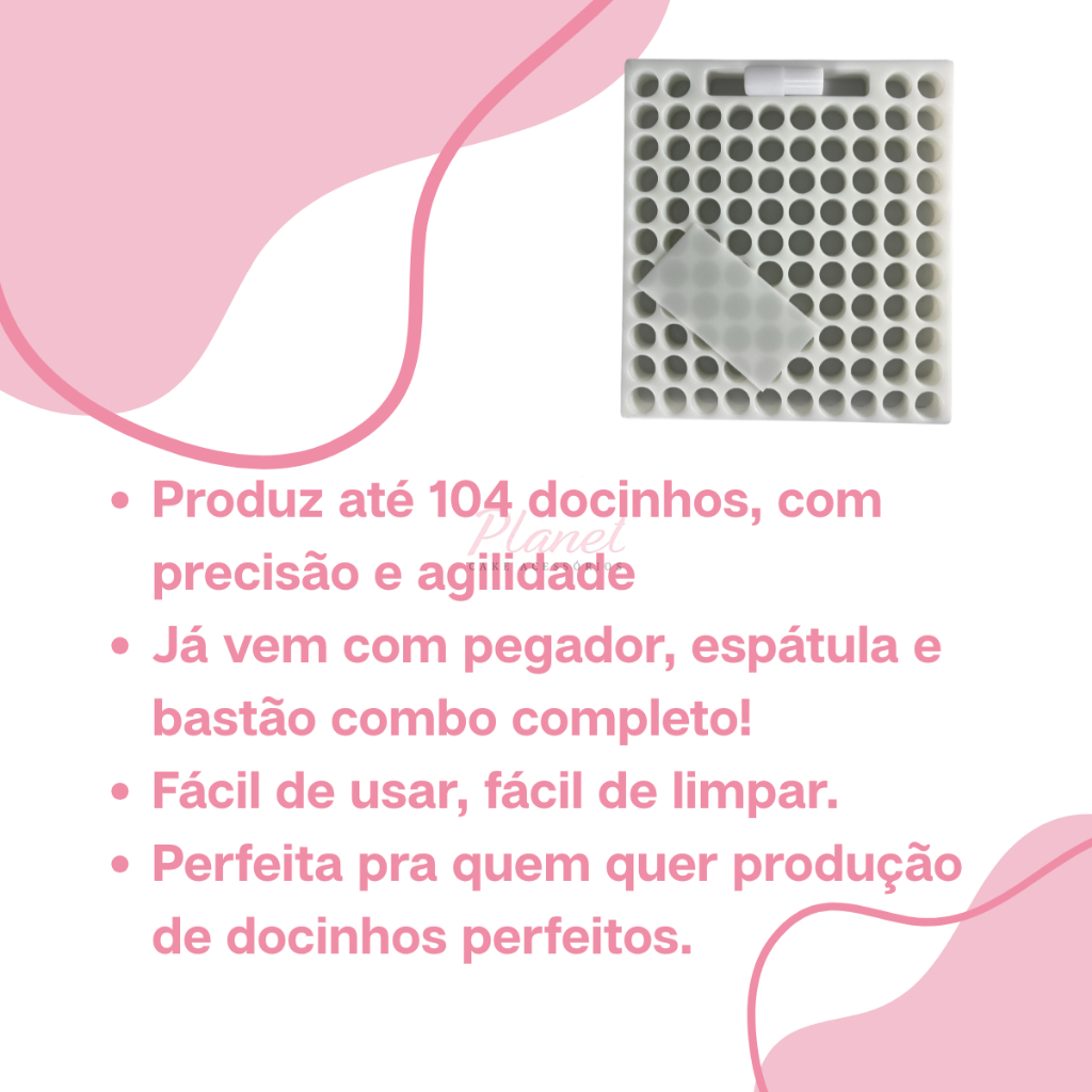 Placa Porcionadora Dosadora Doces brigadeiros beijinhos 104 Furos 15g com bastão e espátula