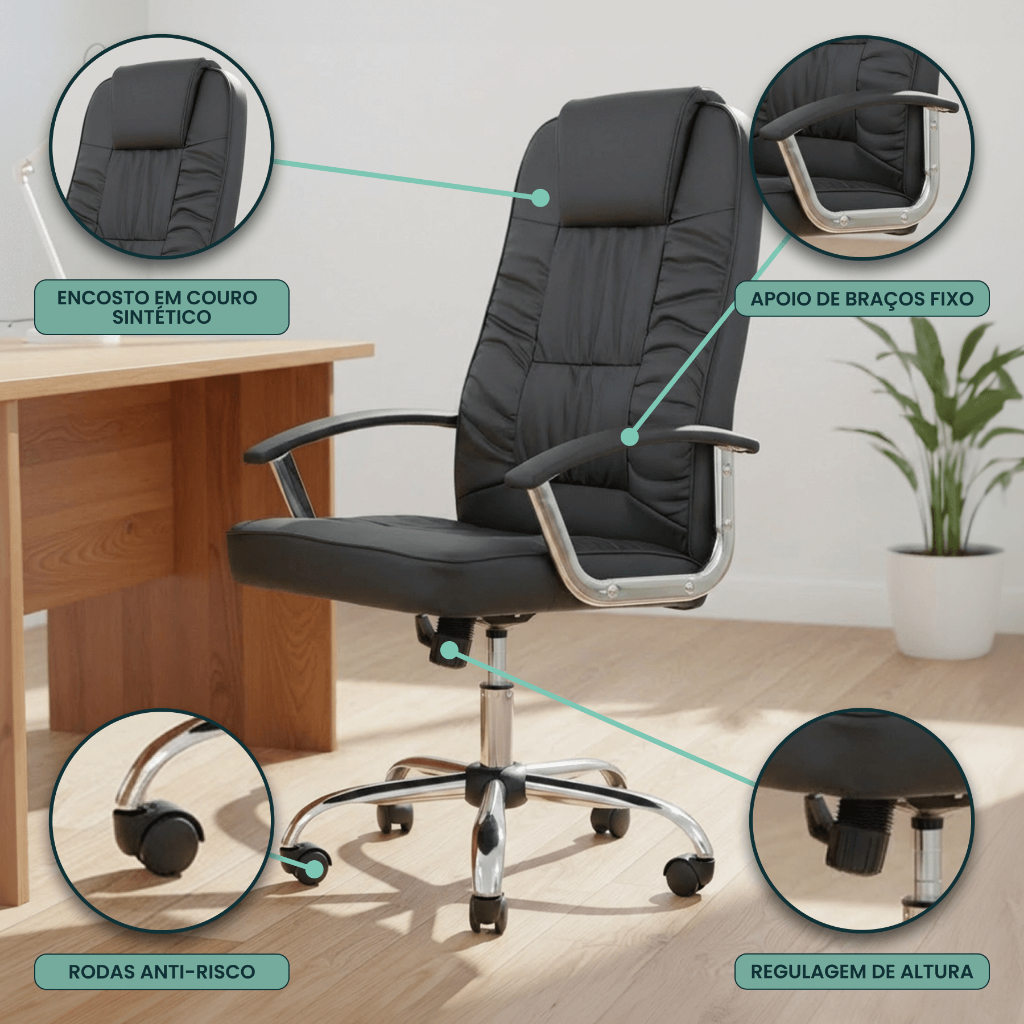 Cadeira de escritório Presidente Denver Preta Healer